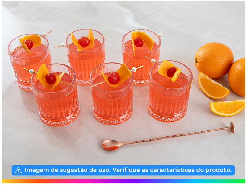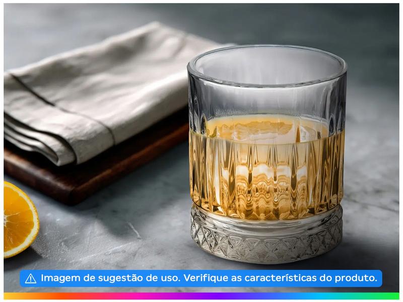 Fabricado em vidro transparente, o jogo é indicado para servir diversos tipos de bebidas, tem 360ml de capacidade cada copo e composto por 6 peças.