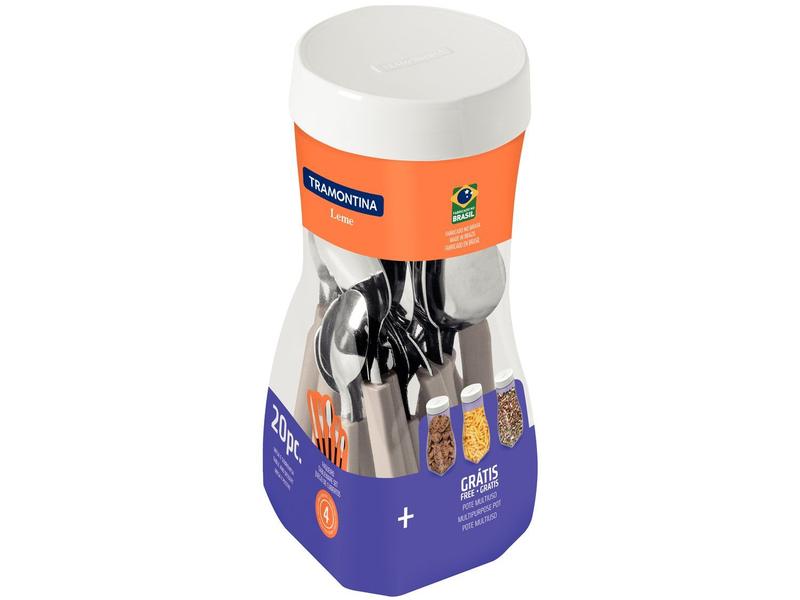 Jogo de Talheres Tramontina Leme Faqueiro 20 pçs Lâminas em Aço Inox e Cabos de Polipropileno