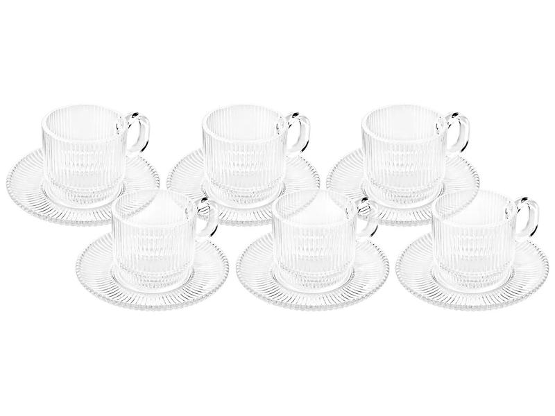 Composto por 6 peças (6 xícaras e 6 pires), o jogo é fabricado em vidro. Cada xícara possui 170ml de capacidade. Pode ser lavado na lava-louças ou se preferir, lave com água, sabão neutro e esponja macia.