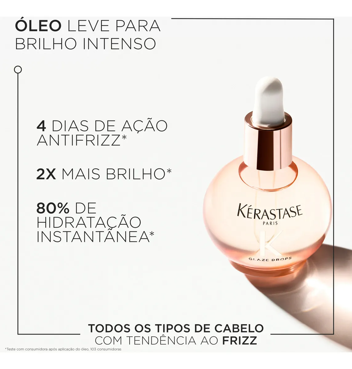 Glaze Drops de Kérastase é um óleo leve de alto brilho para cabelos longos com tendência ao frizz que buscam maciez e brilho. Foi especialmente formulado com óleo de rosas silvestres para proporcionar cabelos brilhantes e com elasticidade.