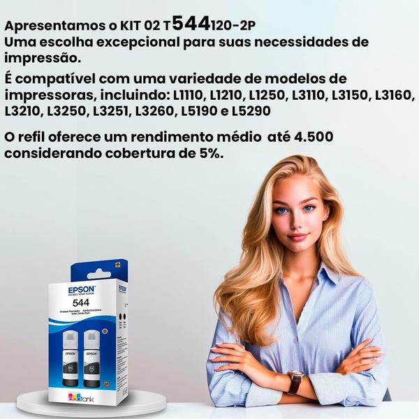 Kit 02 Tinta Original L3250 L3210 T544 L3150 - Preto