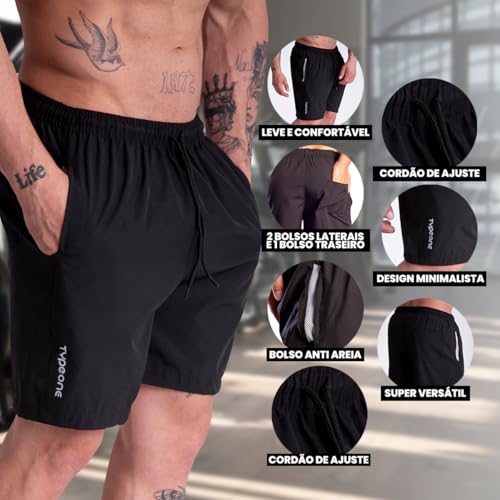 Kit 3 Bermuda Esportiva Masculina Tactel Com Elastano Shorts Com Bolso Anti Areia