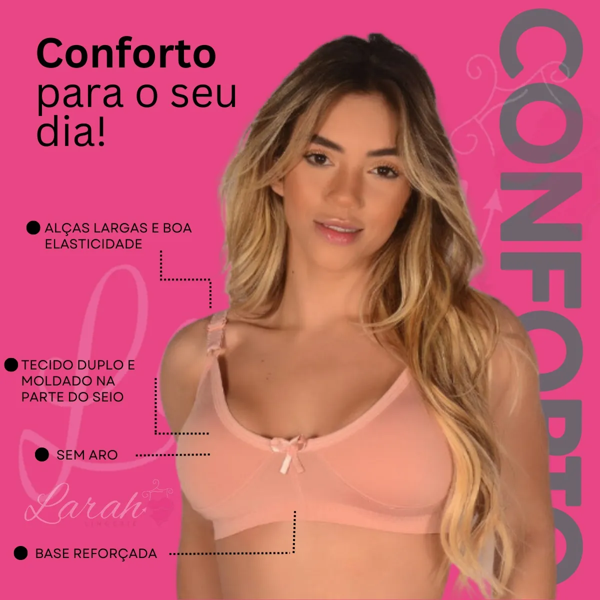 Descubra o conforto e a elegância do Sutiã Básico Alça Reforçada Sem Bojo Plus Size da marca Larah Lingerie. Este sutiã foi projetado especialmente para mulheres que buscam um ajuste perfeito e suporte, sem abrir mão do estilo. Com alças ajustáveis e um fecho traseiro duplo reforçado, ele proporciona segurança e conforto durante todo o dia.