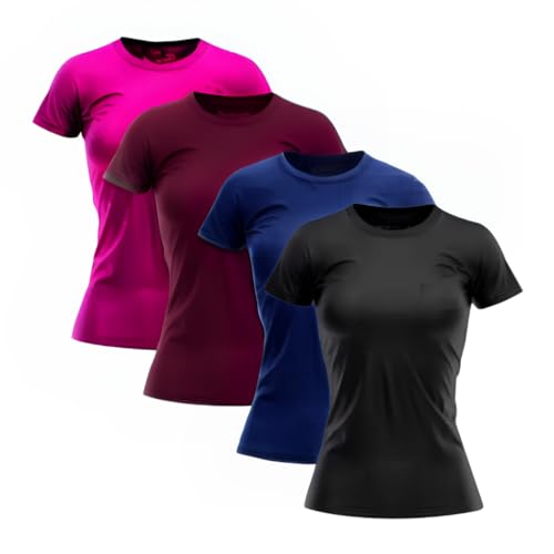 Kit 4 Camisetas Femininas Dry Fit Poliéster Premium Proteção UV 50