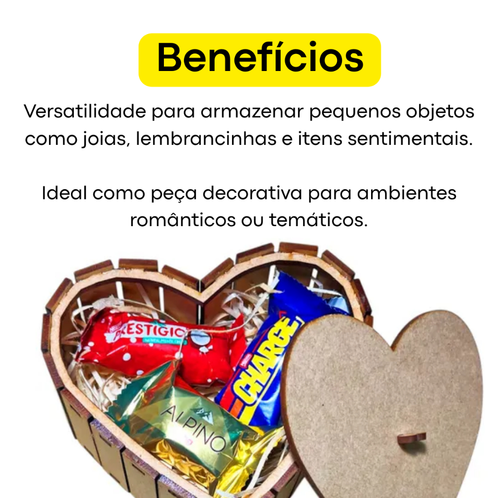 A Caixa coração pode ser usado como lembrancinha de aniversário, dia das mães, presentes, decoração, entre outros.