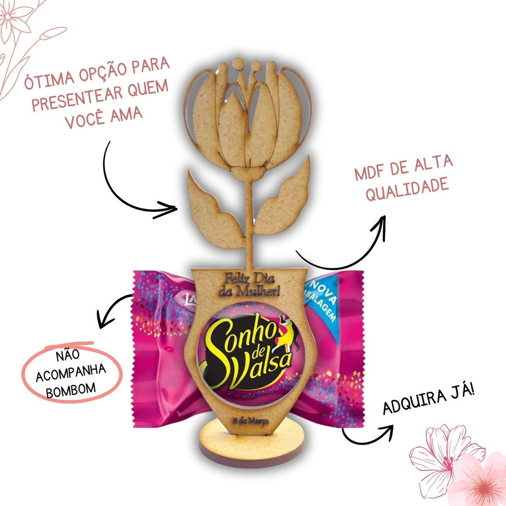 Kit 50 Centro De Mesa Porta Bombom Dia Da Mulher Em Mdf
