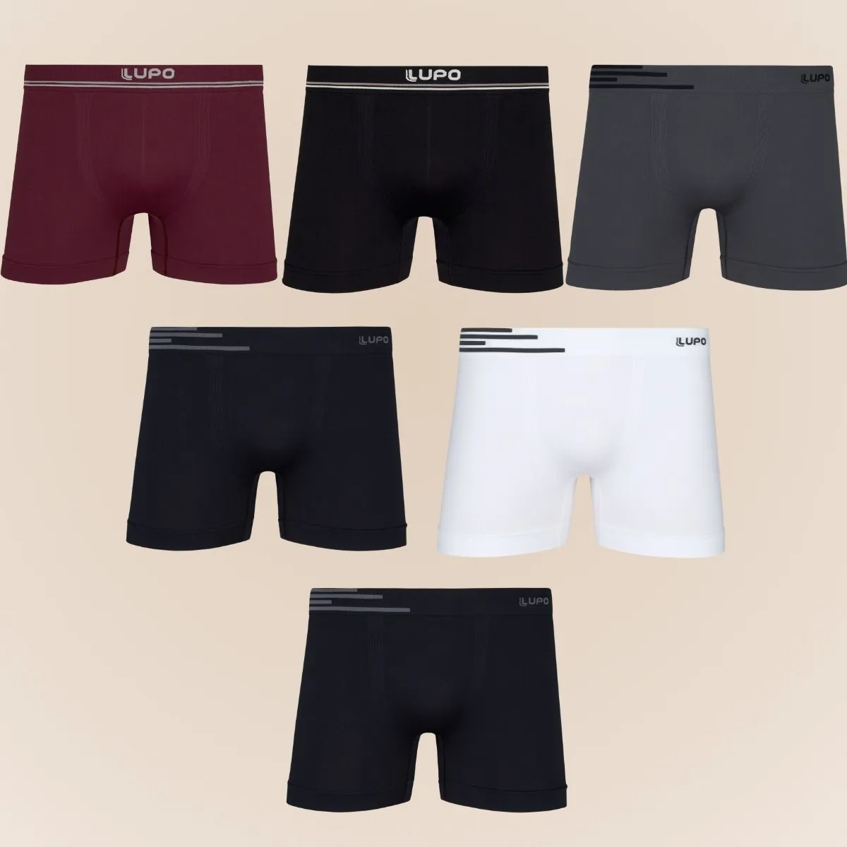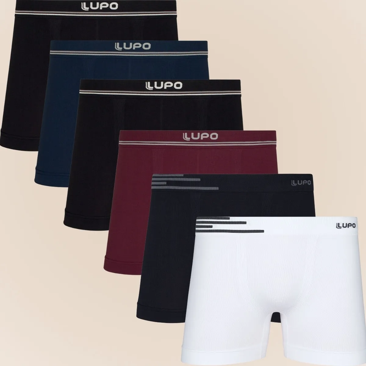 - POLIAMIDA 96% ELASTANO 4%, Cueca Poliamida, Cueca Lupo Original, Cueca Masculina, Kit 6 Cuecas Boxer Lupo, Cueca Boxer