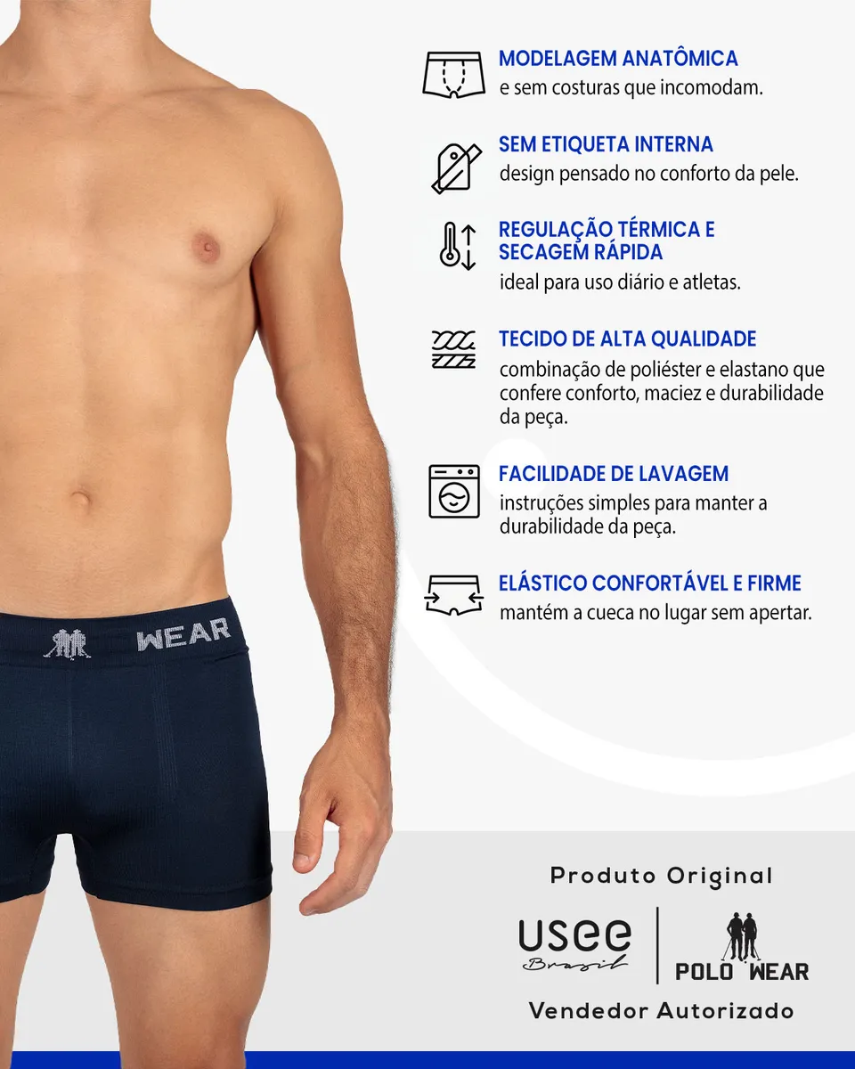 - Kit com 6 Cuecas modelagem boxer da Polo Wear.
