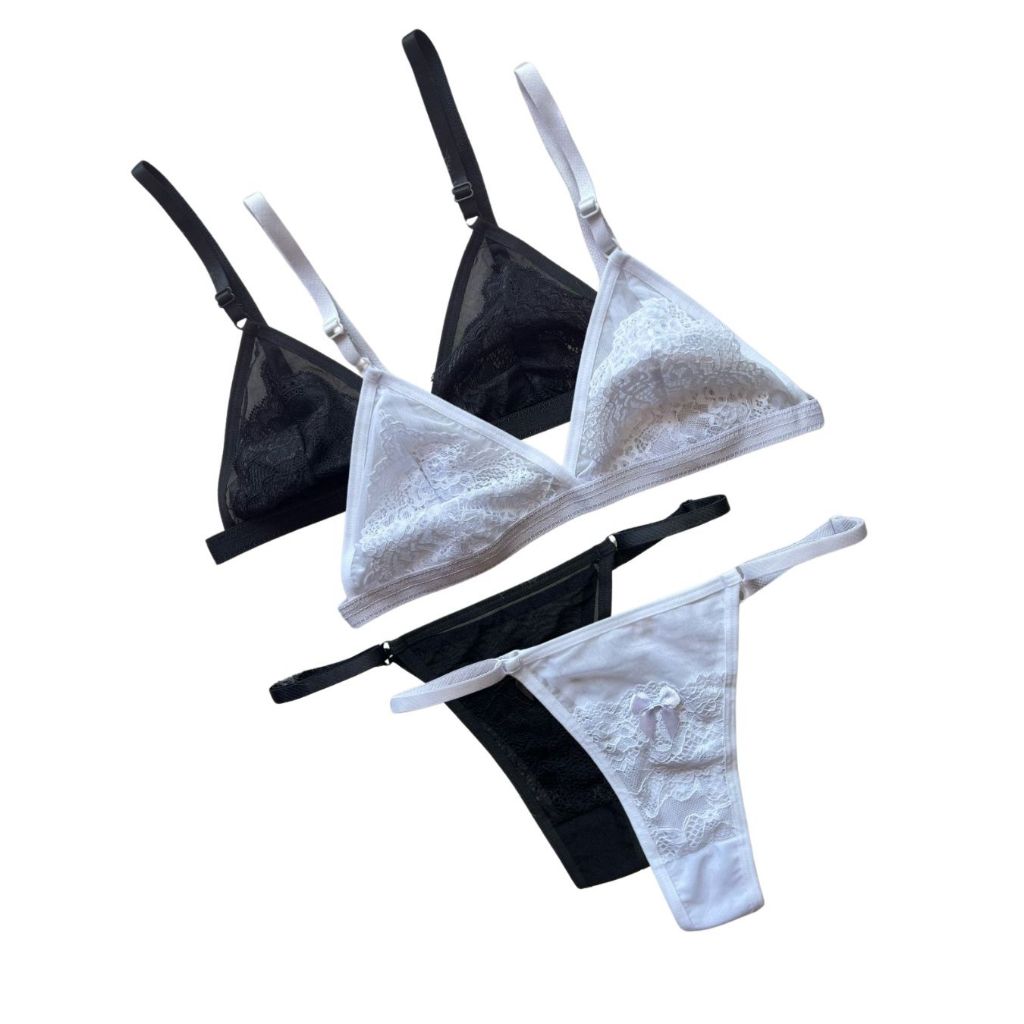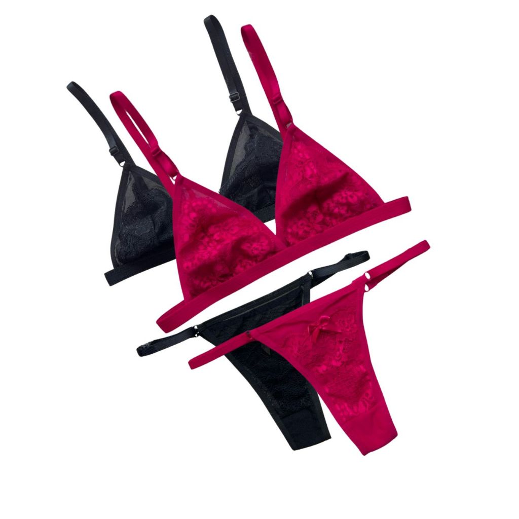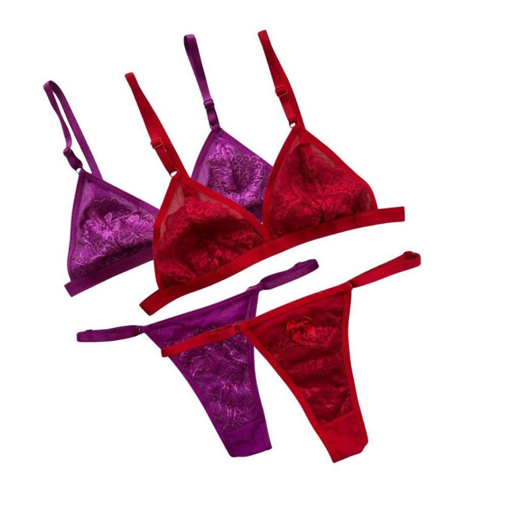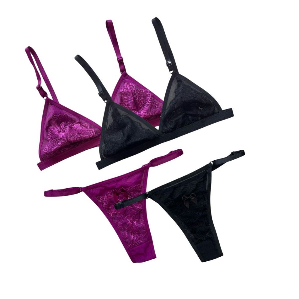Kit Com 2 Conjunto Feminino De Lingerie Sensual Em Tule Transparente Sem Metal
