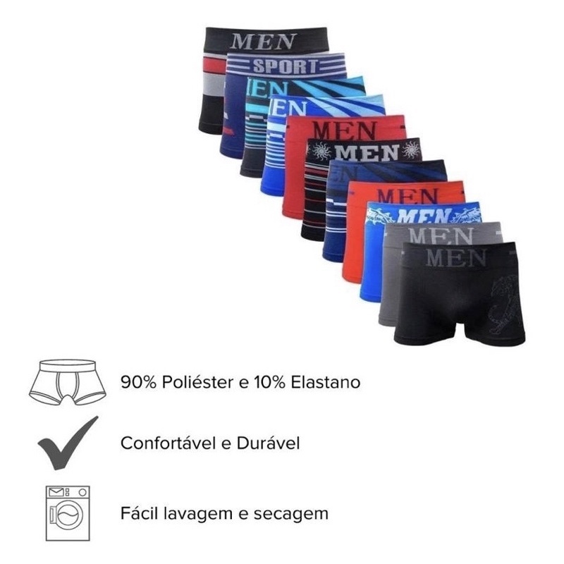 Kit Cuecas Boxer Masculina Microfibra Adulto Sem Costura