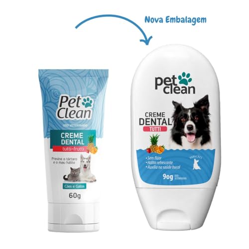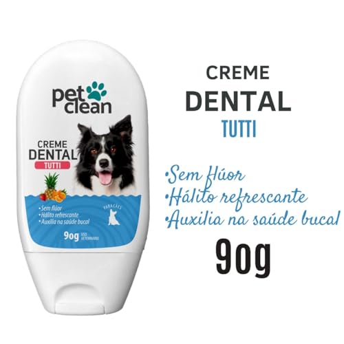Kit Escova de Dente e Creme dental Tutti Frutti Pet Clean 90g Previne Mau Hálito Saude Bucal de Cães