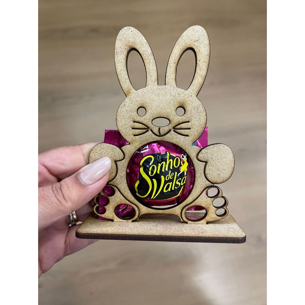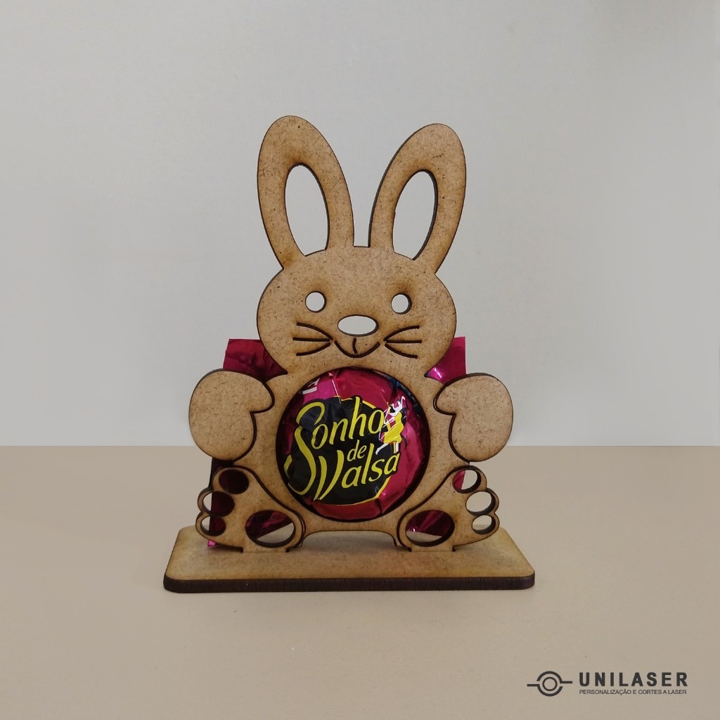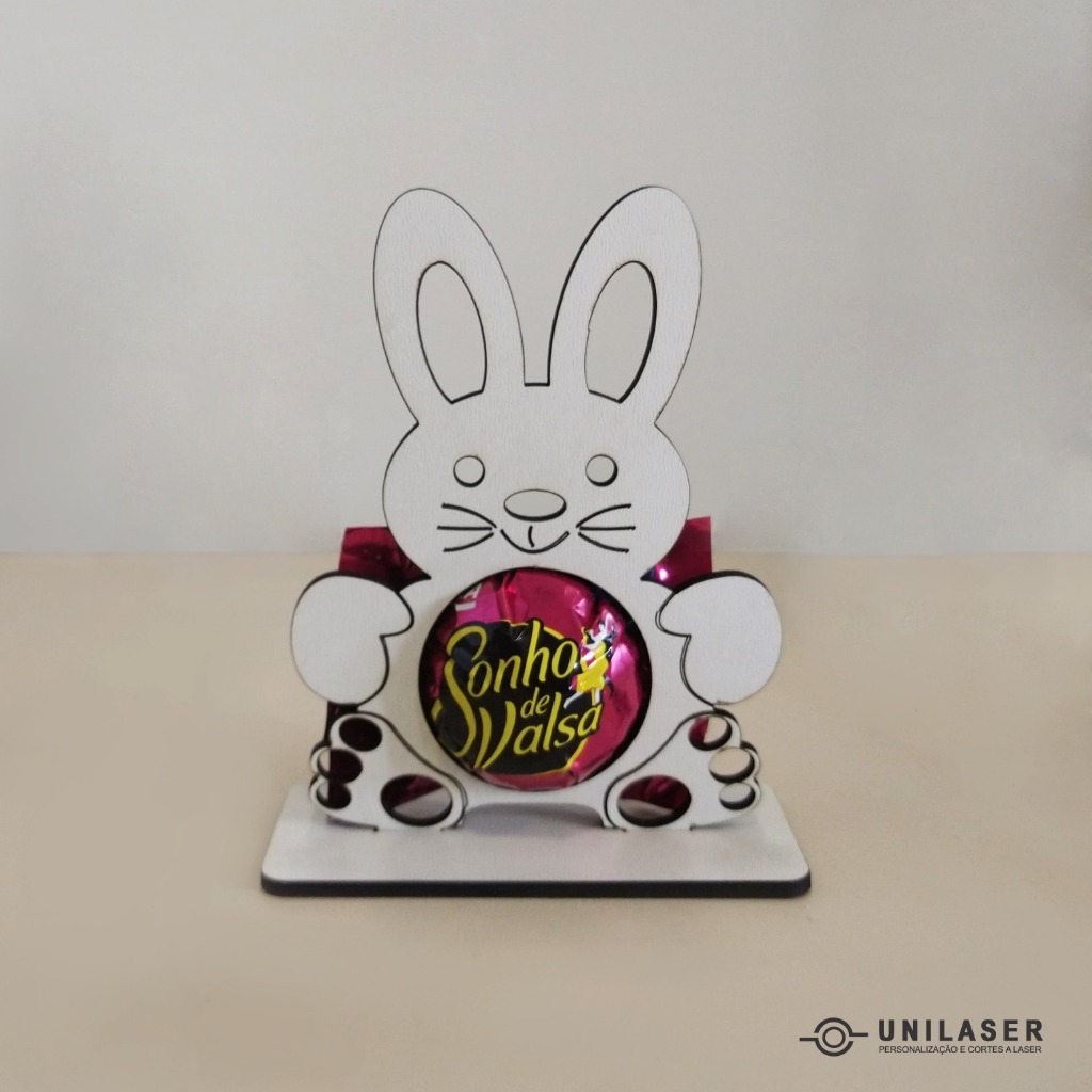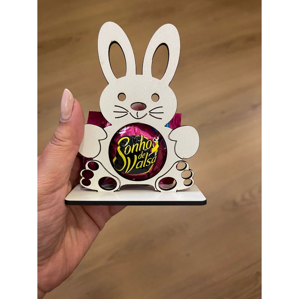 KIT Lembrancinha Porta Bombom Coelho da Páscoa Mdf Cru, Mdf Branco