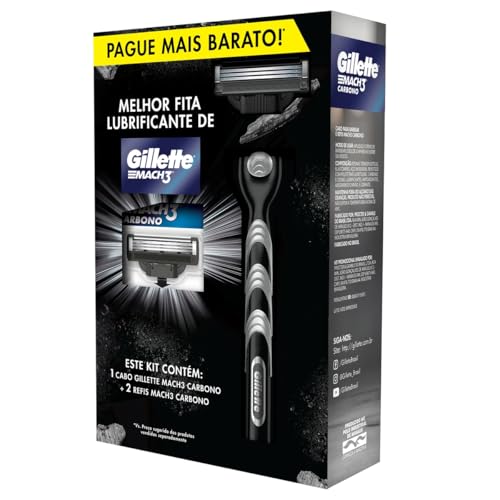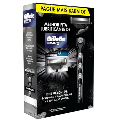 O aparelho de barbear reutilizável Gillette Mach 3 Carbono possui carvão ativado em sua fita lubrificante e remove impurezas da pele com um barbear rente e confortável. Sua nova fita lubrificante possui maior lubrificação para que delize melhor no seu rosto. As 3 lâminas do aparelho de barbear Gillette Mach3 Carbono mais fortes que o aço se mantém afiadas por mais tempo, oferecendo até 20 barbas feitas*. Conta com cabeça flexível que se ajusta ao contorno do seu rosto, 10 microtensores que esticam suavemente a pele antes da passada das lâminas para evitar cortes e um cabo com desenho ergonômico para maior controle durante o barbear. Todas as cargas de Mach3 se encaixam em qualquer cabo de Mach 3. Contém: Um (1) cabo e (5) cargas.*Pode variar segundo os hábitos e as características de cada homem.