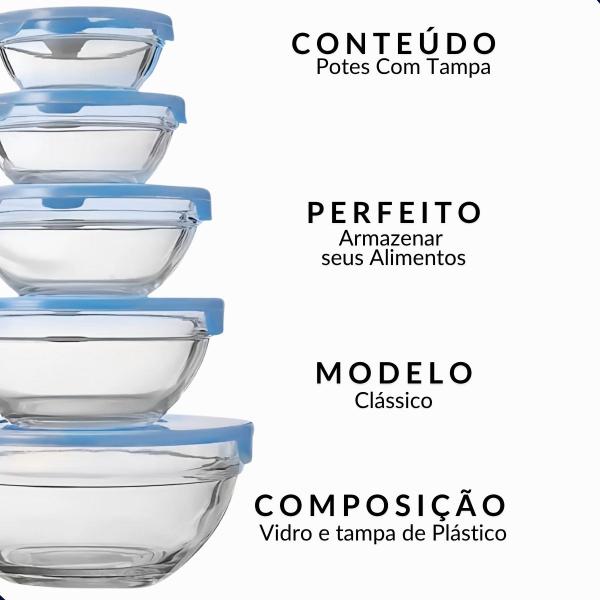 Apresentamos nosso excepcional Conjunto de 5 Potes em Vidro com Tampa, a solução perfeita para revolucionar sua rotina culinária. Imagine a praticidade de armazenar seus alimentos frescos com segurança, a facilidade de preparar suas receitas favoritas e a elegância de servir à mesa com estilo, com essa versatilidade, os potes em vidro foram projetados para se tornarem seus melhores aliados na cozinha.