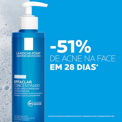 La Roche-Posay Effaclar Gel de Limpeza Facial Antiacne Concentrado com Ácido Salicílico, Zinco e LHA, Limpeza Profunda, Reduz Oleosidade e Desobstrui os Poros, 300ml
