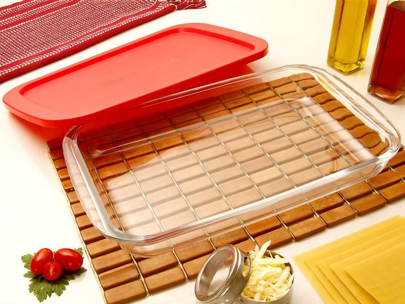 Lasanheira de Vidro Retangular 2,9L com Tampa Marinex - Prática