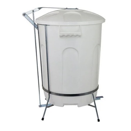 LIXEIRA 100 LITROS BRANCA ESTRUTURA FERRO, AÇO, REFORÇADA, PEDAL, BASCULANTE, REDONDA.