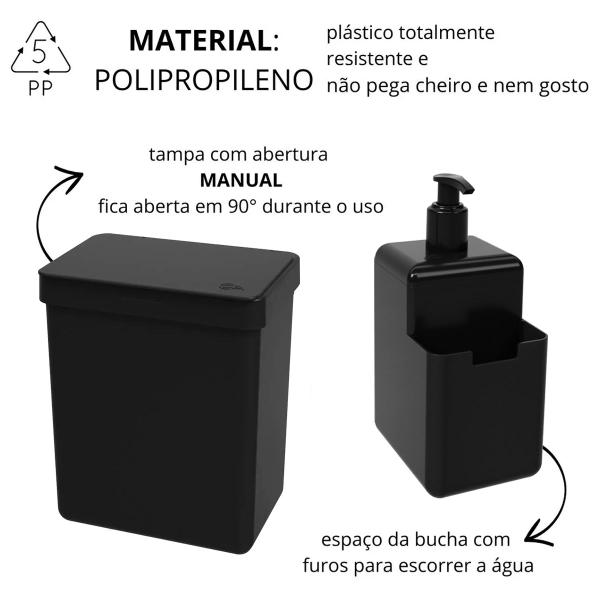 Lixeira 2,5 L Com Tampa + Porta Detergente Bucha Pia Cozinha - Coza