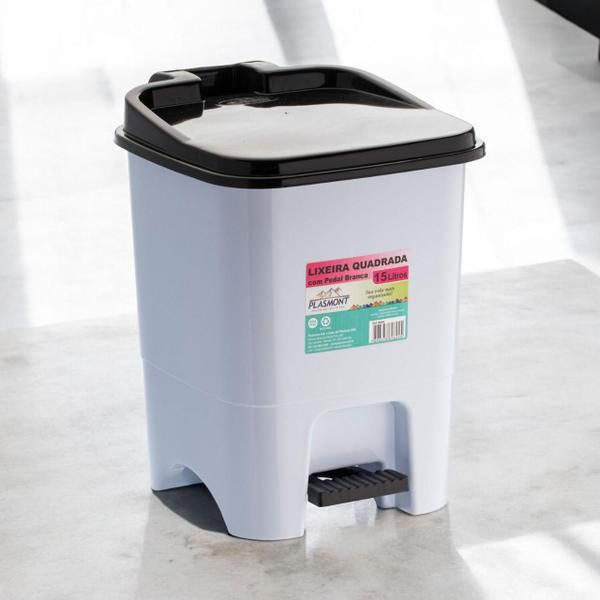 Lixeira Cesto De Lixo Plástico Branca e Preta 15 Litros Resistente Com Pedal Banheiro Cozinha