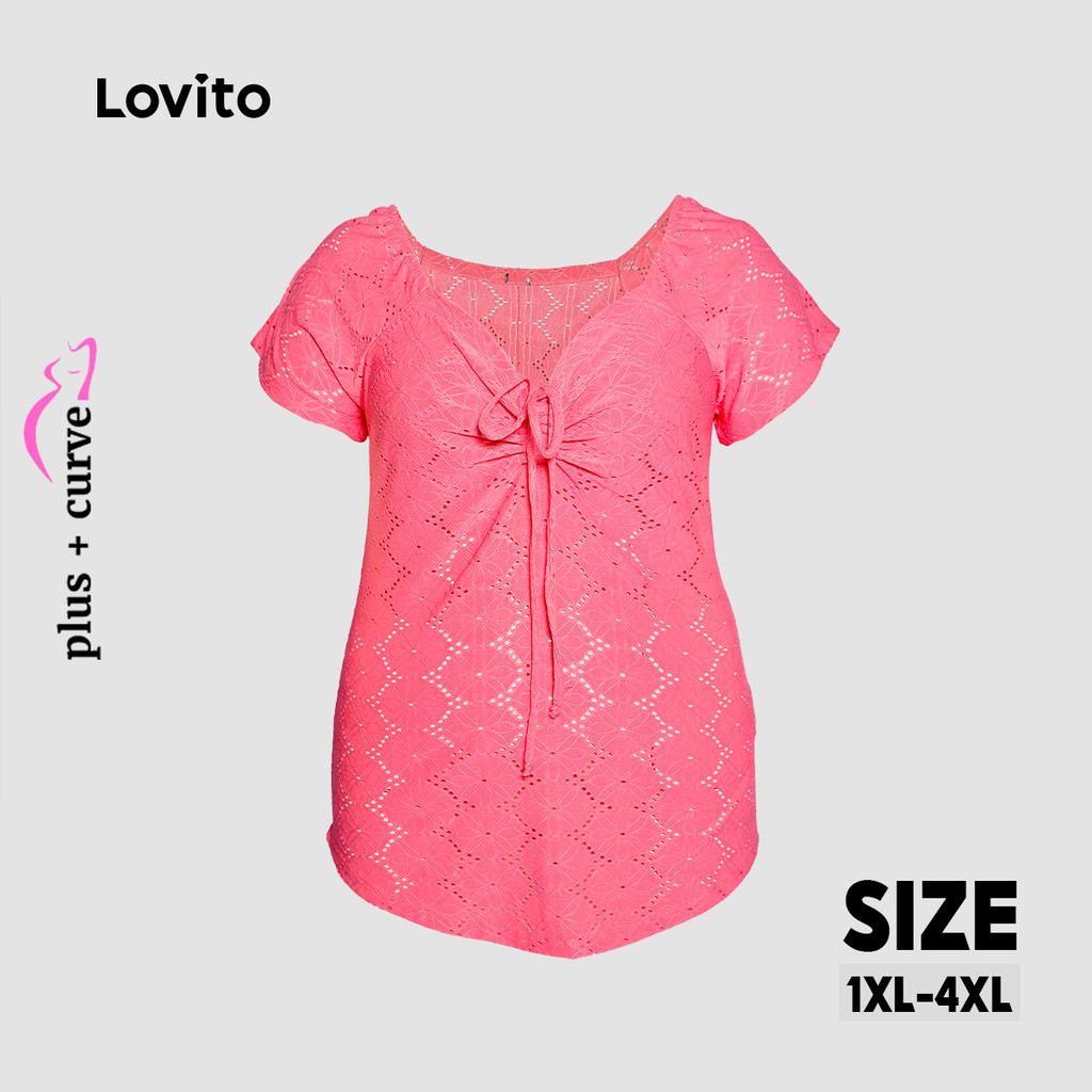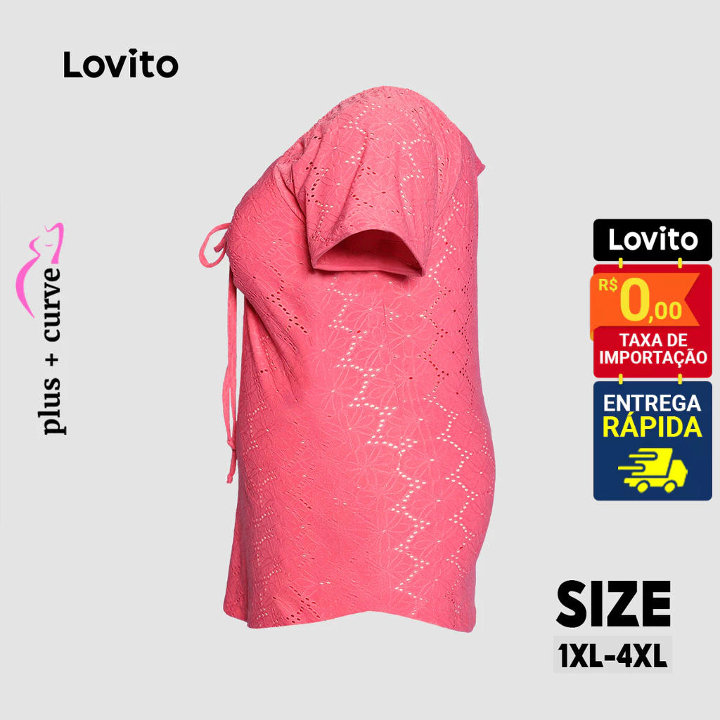 Lovito Blusa Plus Size Manga Curta Amarracao Feminina LB1037BRL1067