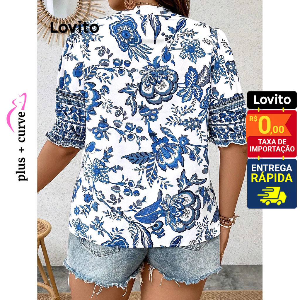 Lovito Blusa Plus Size Manga Curta Com Estampa Floral Feminina LBL09403