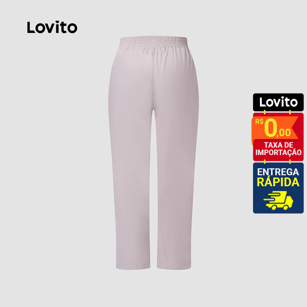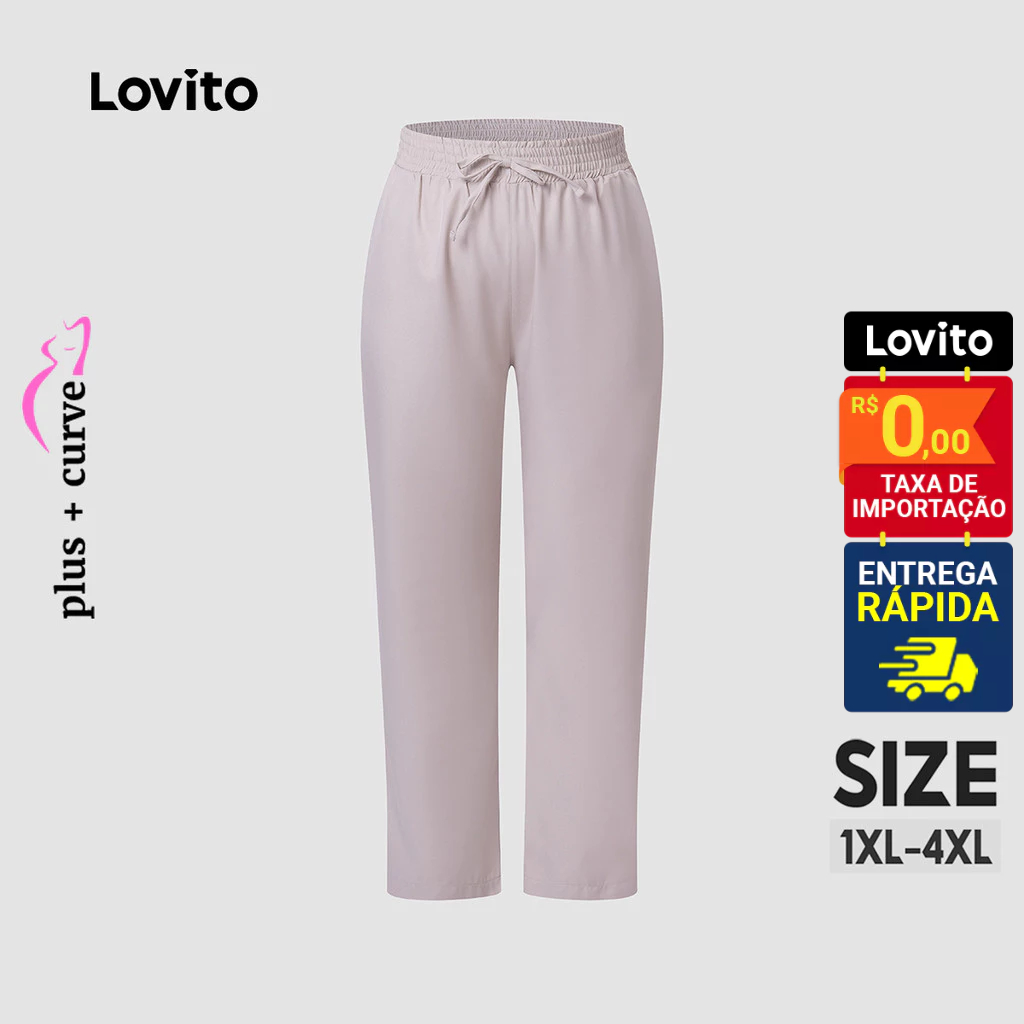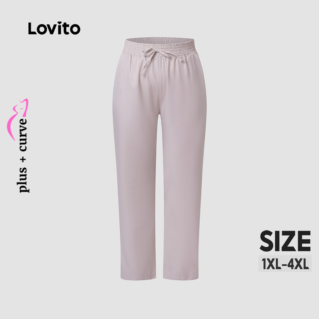 Lovito Calça Plus Size Alfaiataria Slim Elástico Cintura e Amarração Feminina LB61BRL090