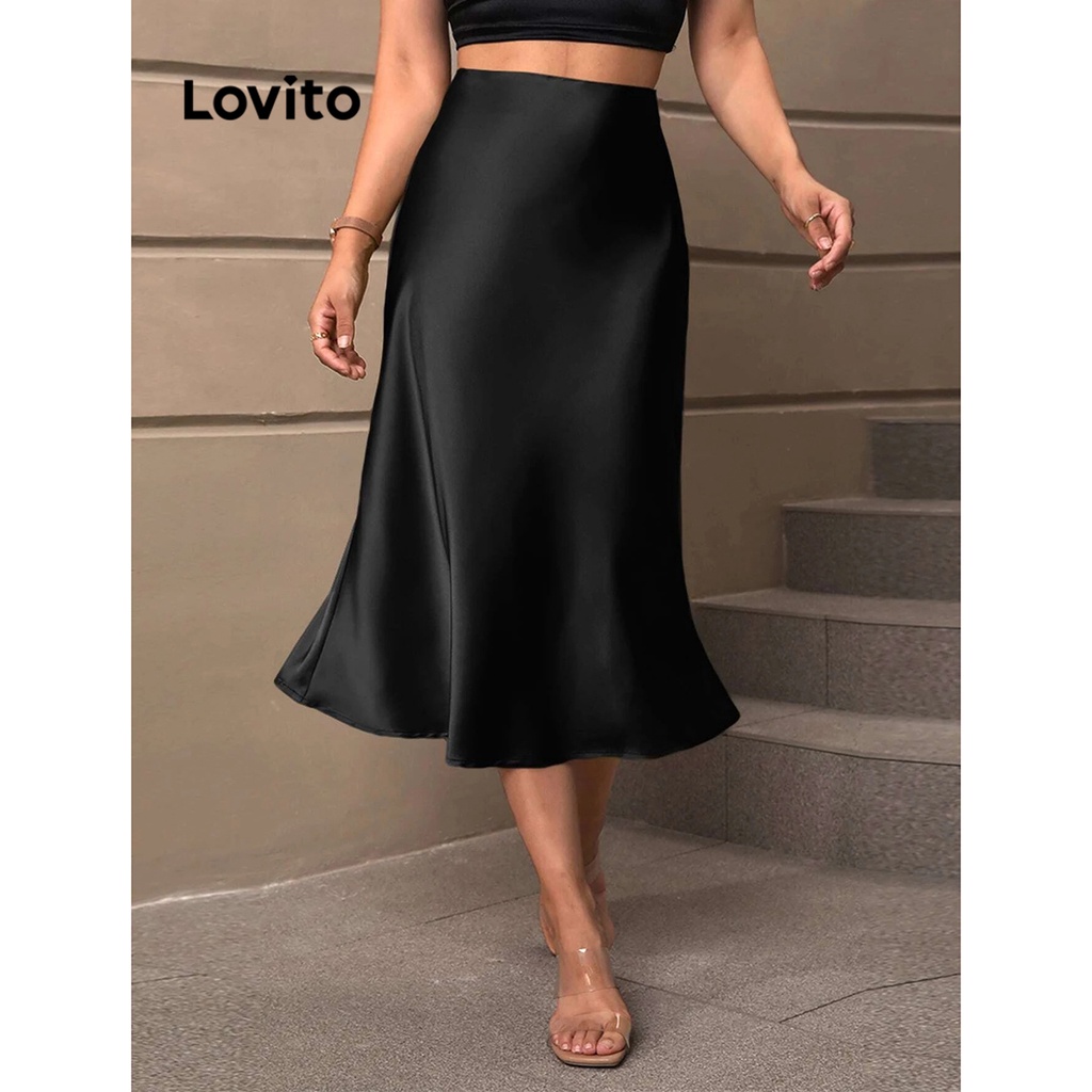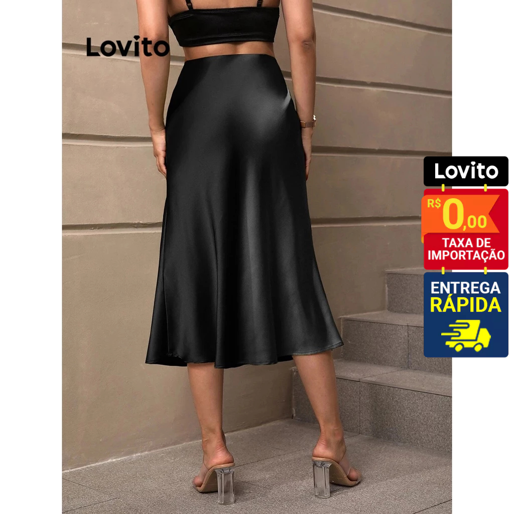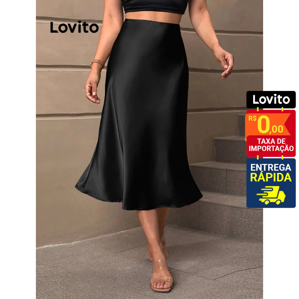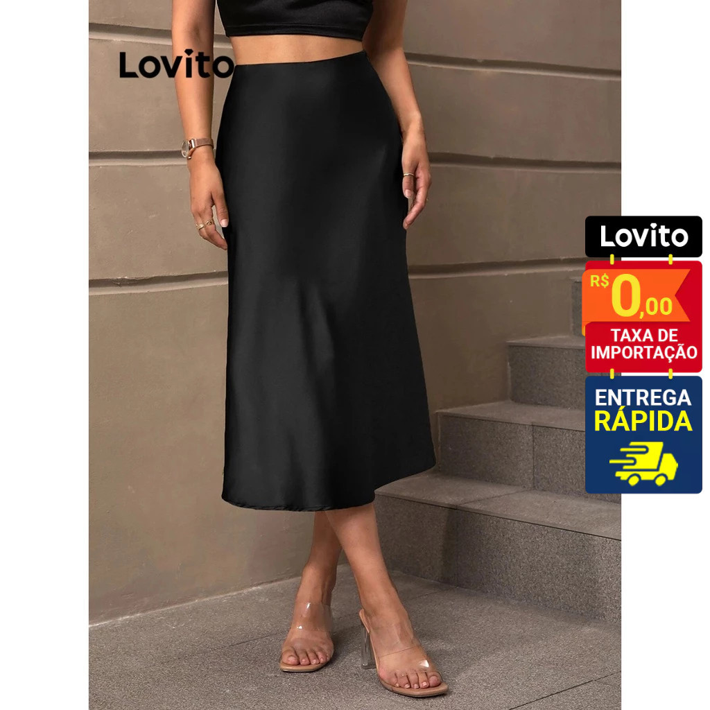 Lovito Elegante Saia Feminina Lisa com Bainha de Babados e Zíper LNE31164