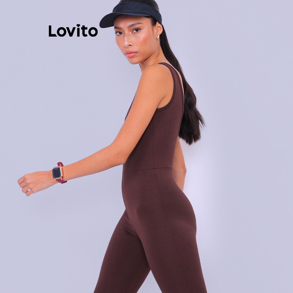 Lovito Macacão Longo Academia Marrom Moda Esportivo Liso para Mulheres LB708BRL738