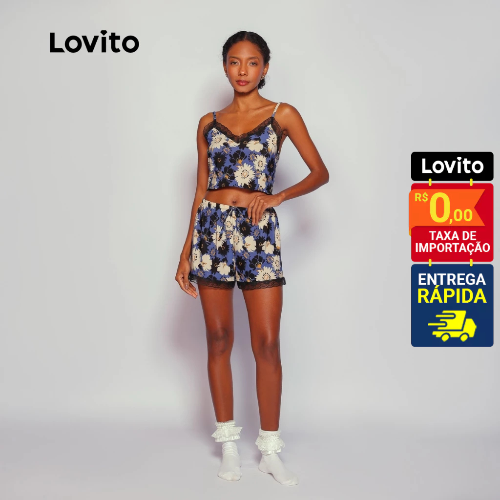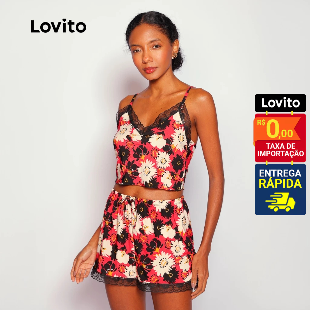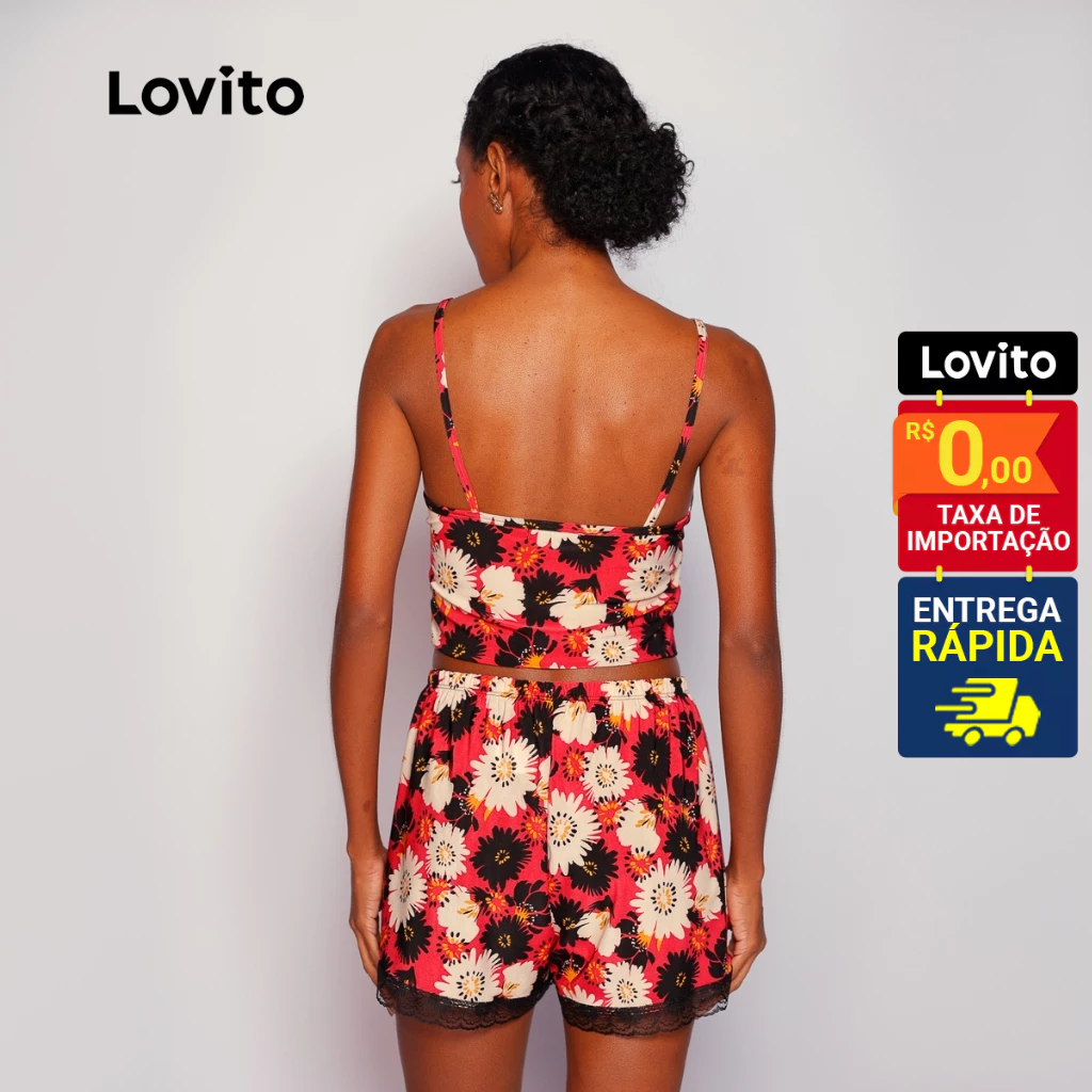 Lovito Pijama Conjunto 3 peças Longo e Curto Floral para Mulheres LB796BRL826