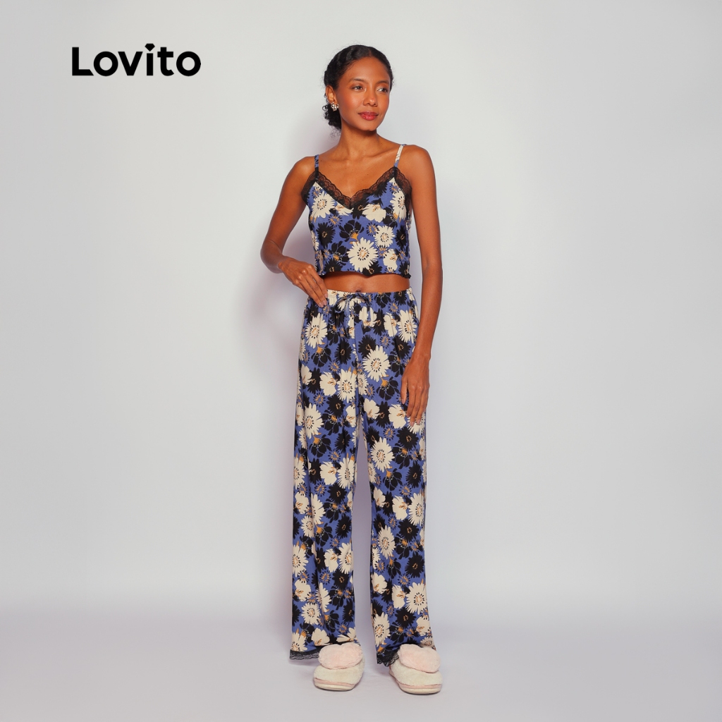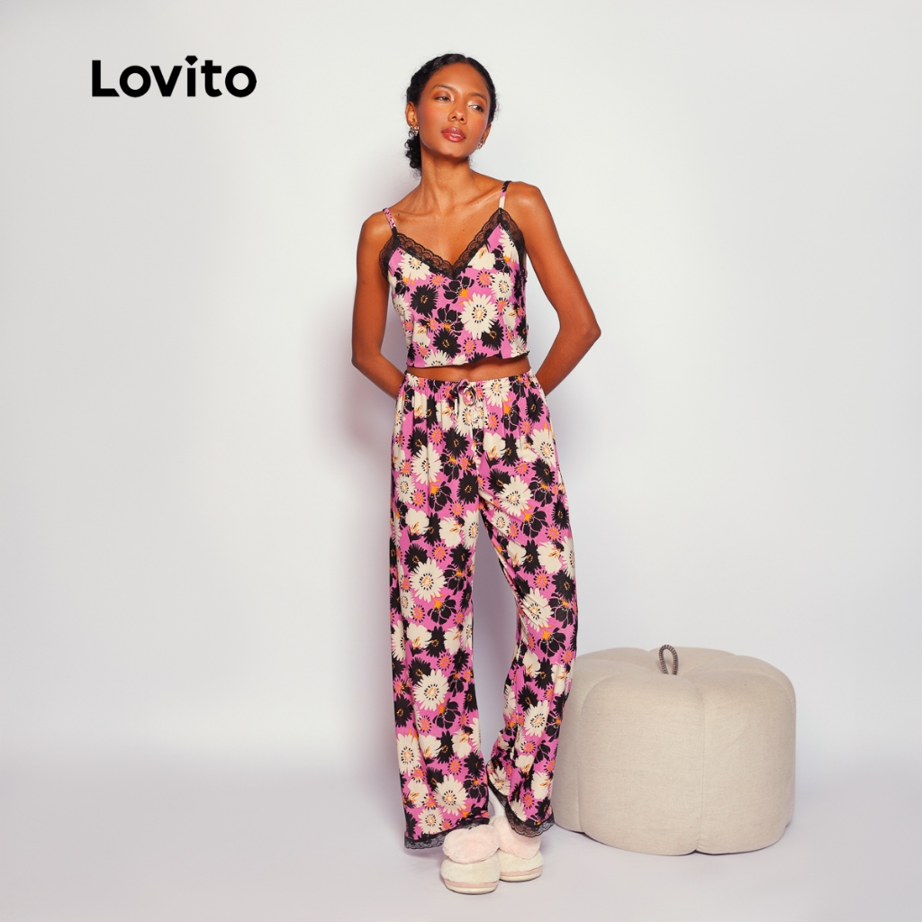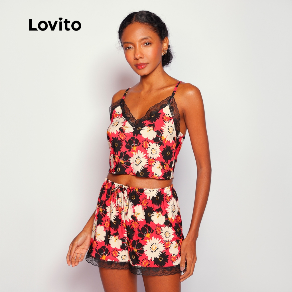 Lovito Pijama Conjunto 3 peças Longo e Curto Floral para Mulheres LB796BRL826