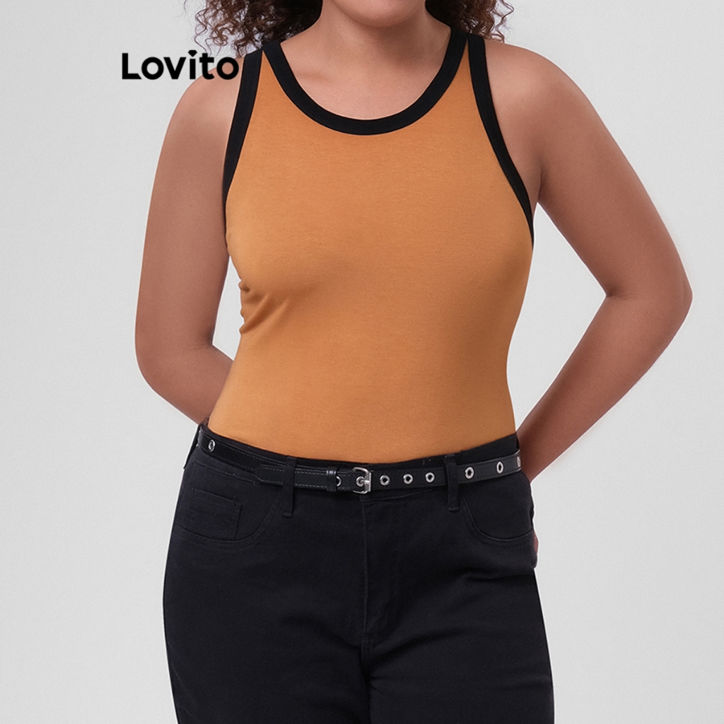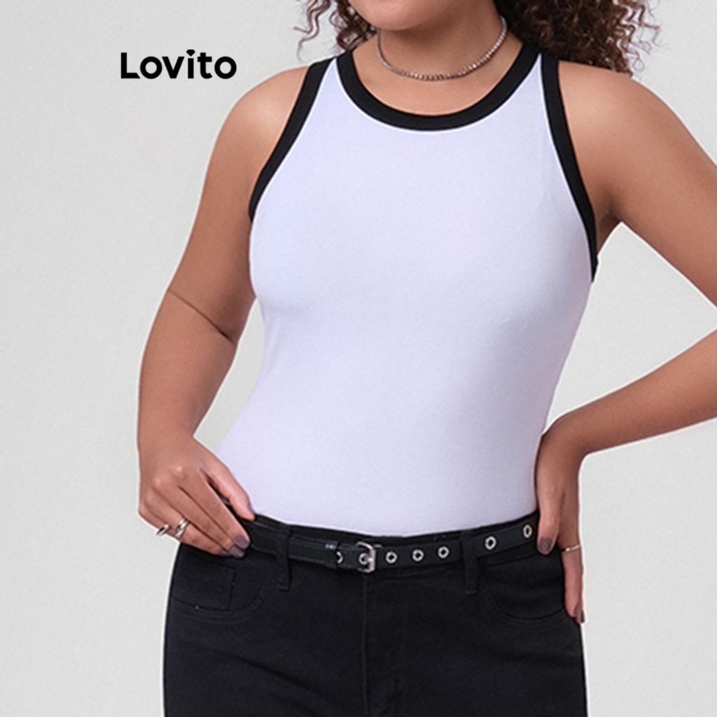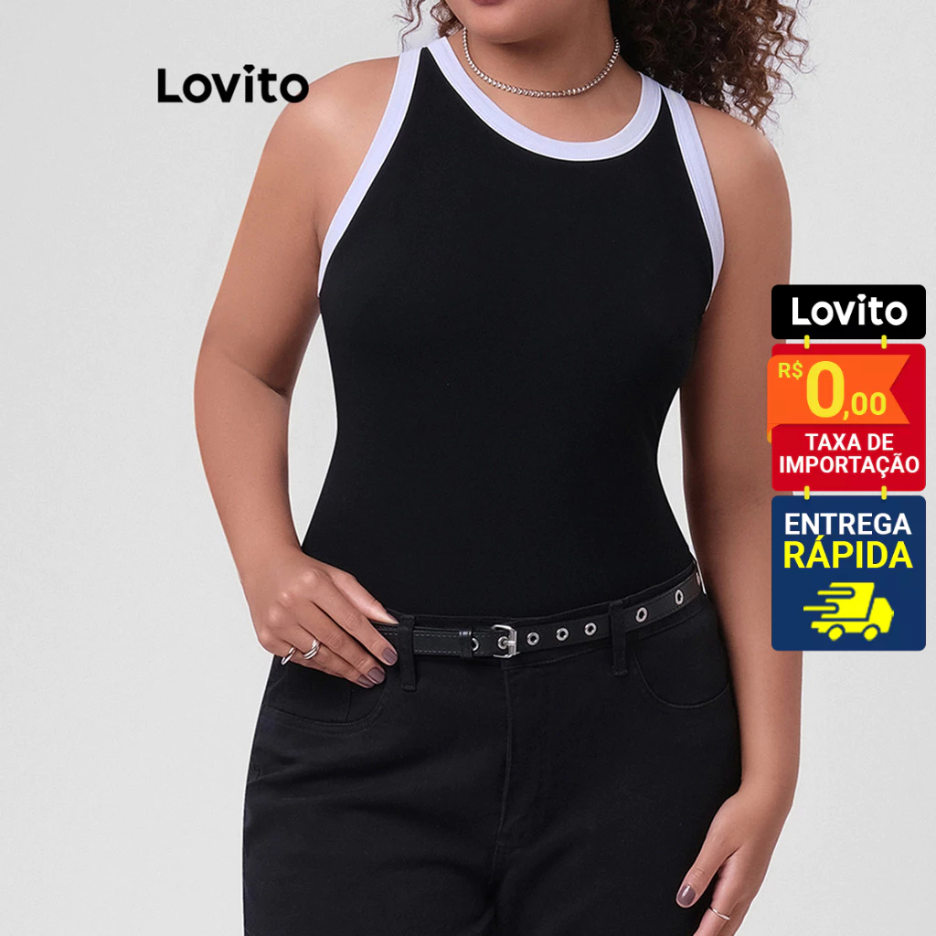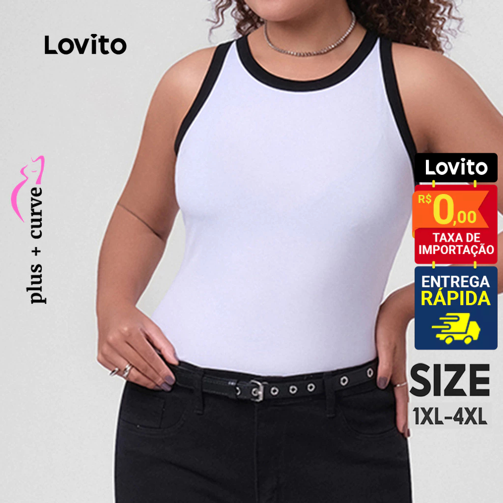 Lovito Regata Feminina Plus Size Gola Contrastante LB249BRL278