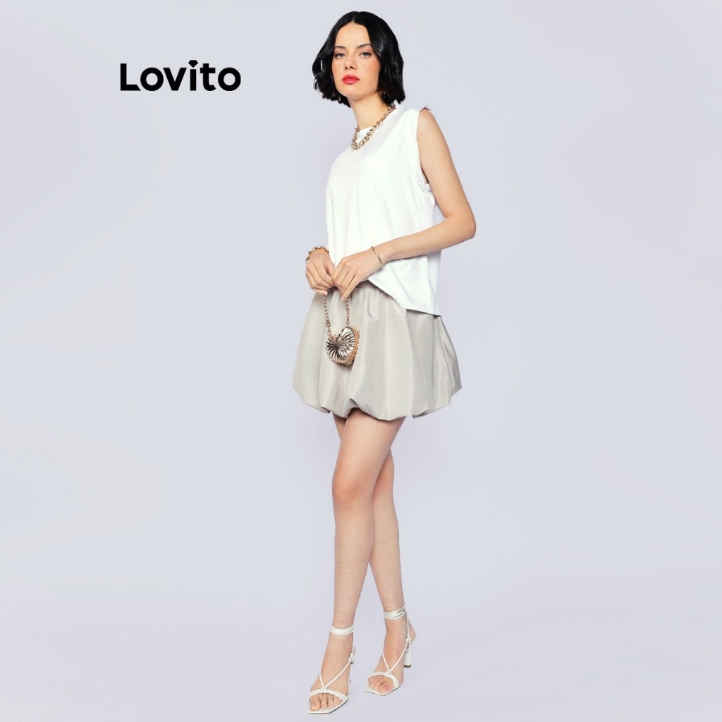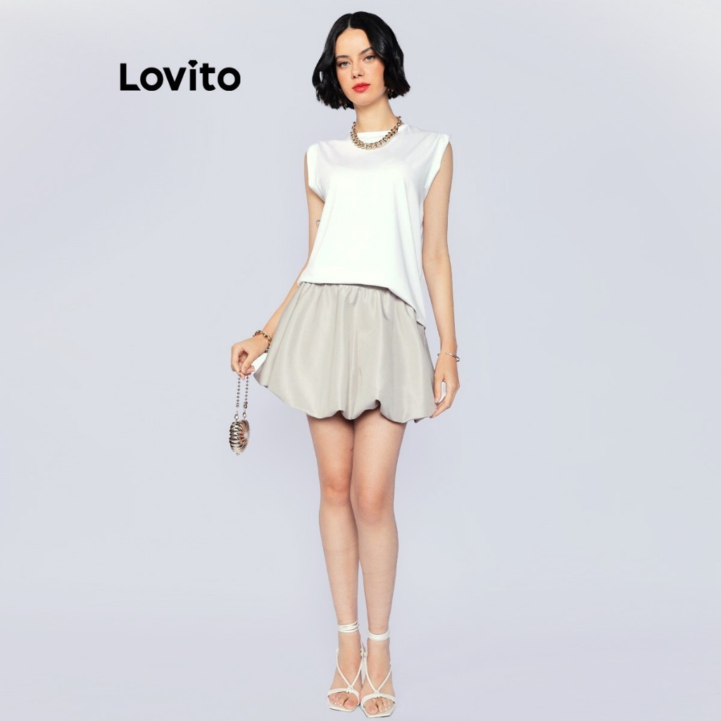 Lovito Saia Curta Balonê Moda Casual Feminina LB1257BRL1287