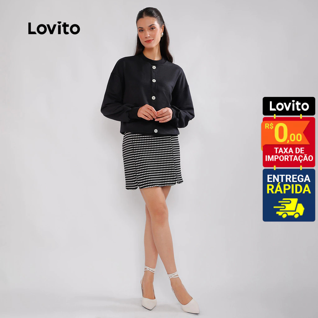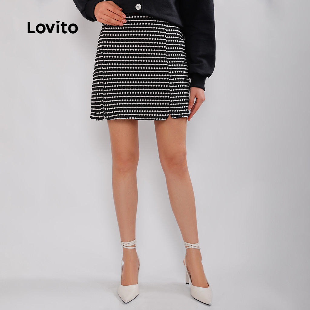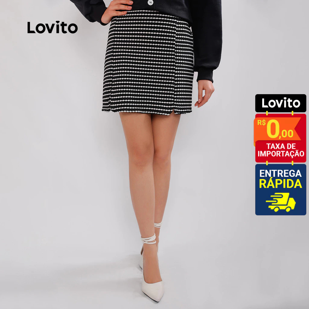 Lovito Saia Curta Social Xadrez Vichy Elegante Preppy Feminina LB431BRL460