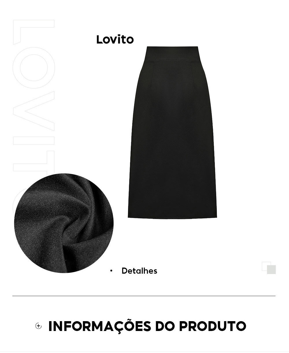Lovito Saia Feminina Midi com Fenda LNL37164