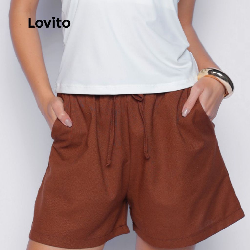 Lovito Shorts de Linho Alfaiataria Curto Com Bolsos com Elástico na Cintura LB1294BRL1324