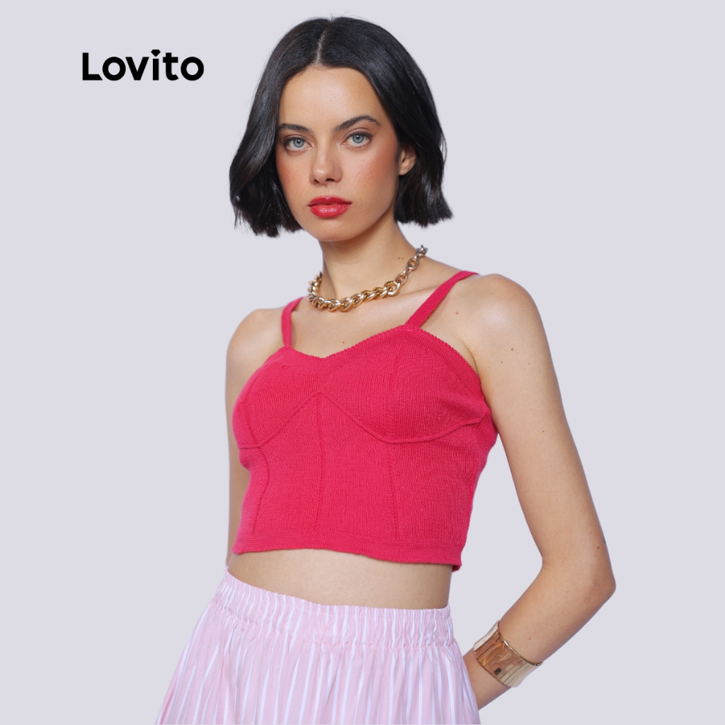 Lovito Top Cropped Alcas Fina Moda Tricot Corset LB1325BRL1355