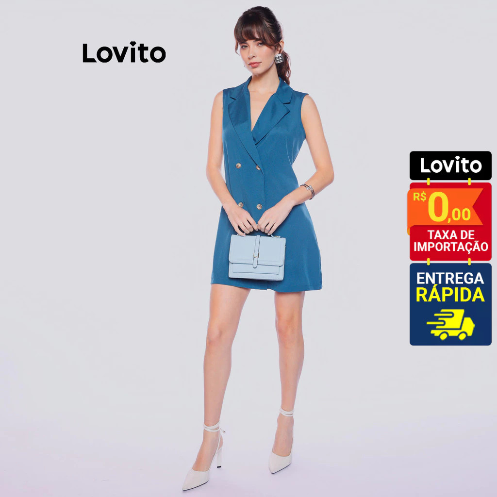 Lovito Vestido Blazer Curto Trabalho Social Elegante Moda com Botões LB963BRL993