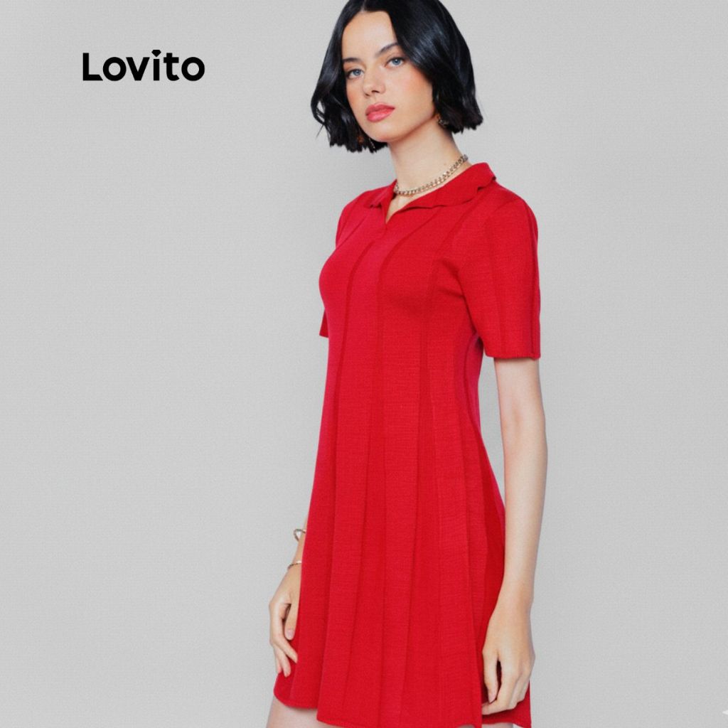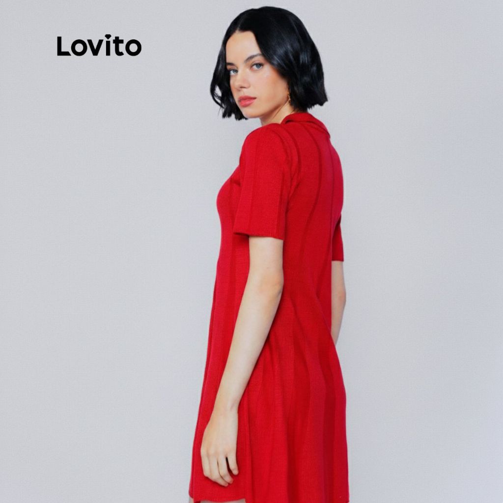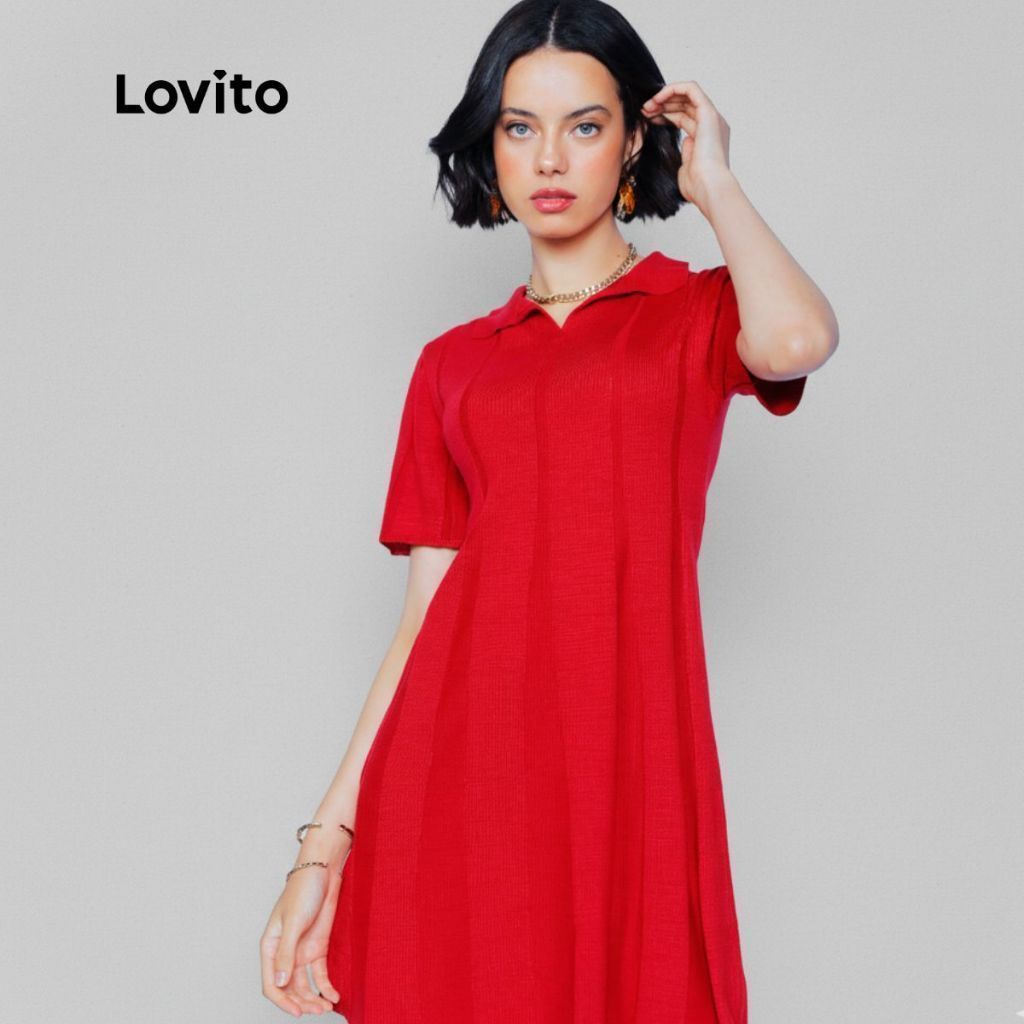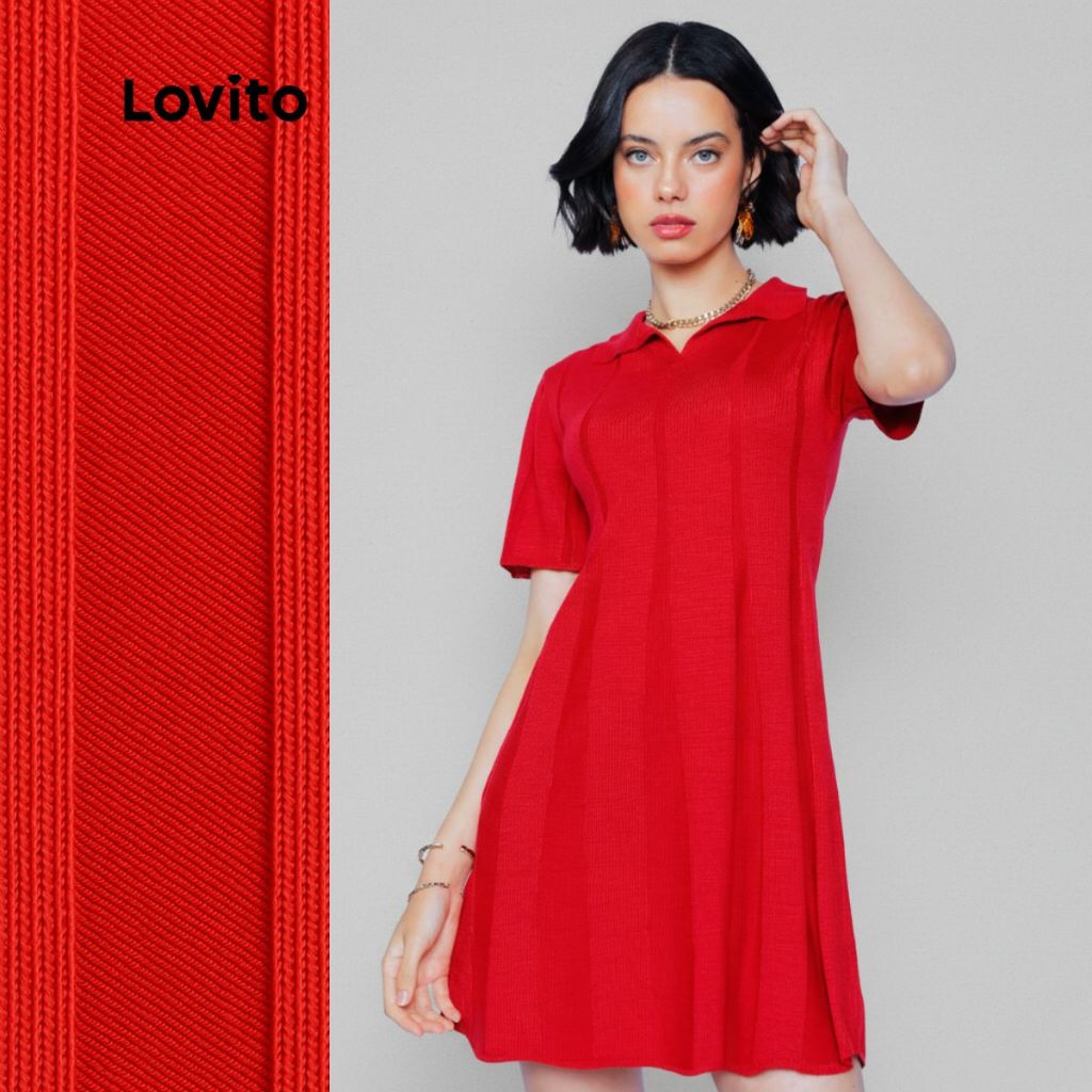 Lovito Vestido Curto Polo Tricot Casual Liso em Linha A Feminino LB958BRL988