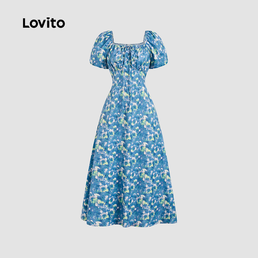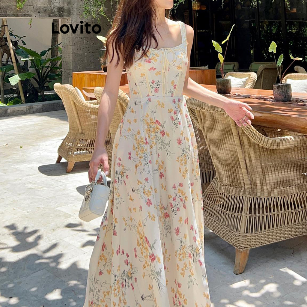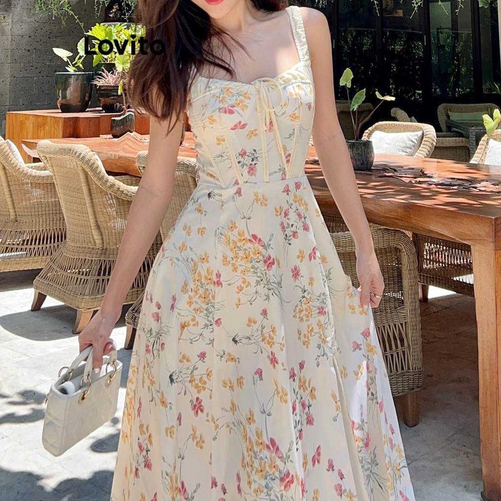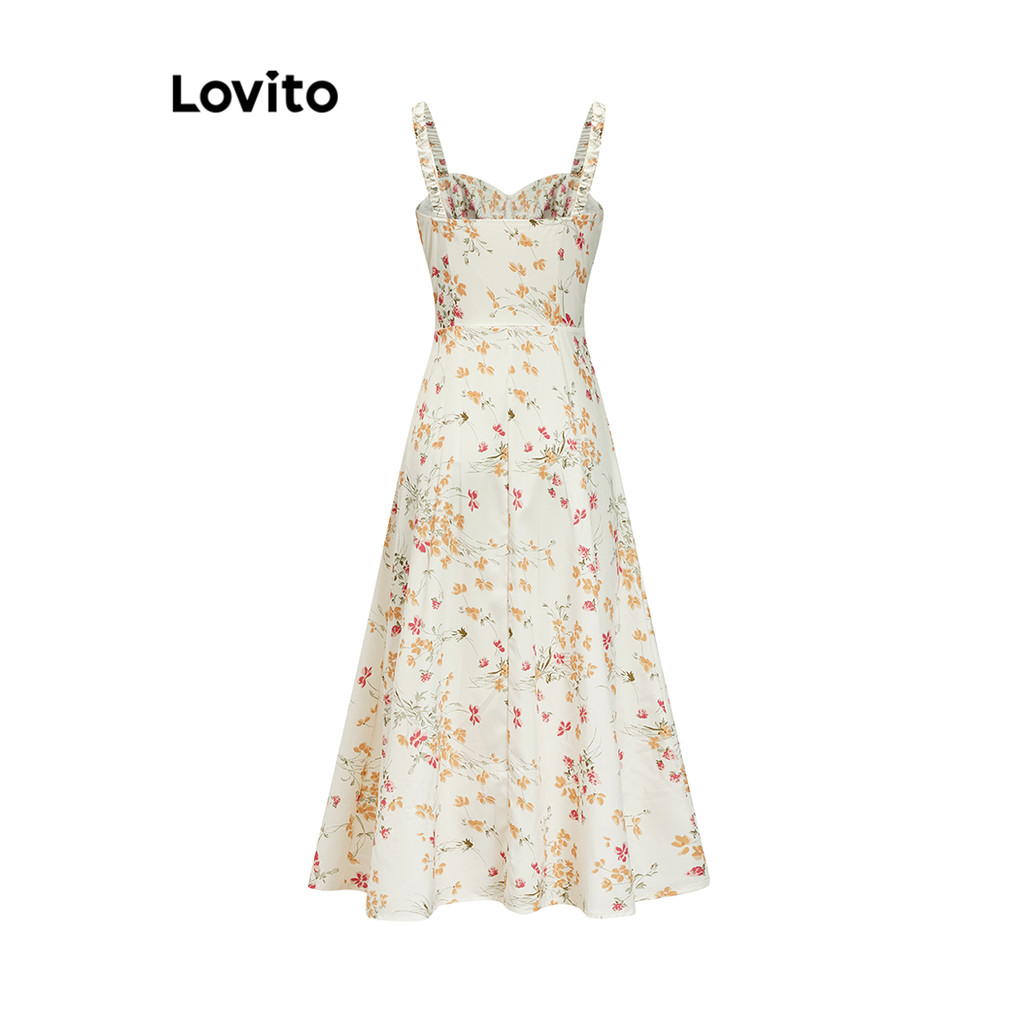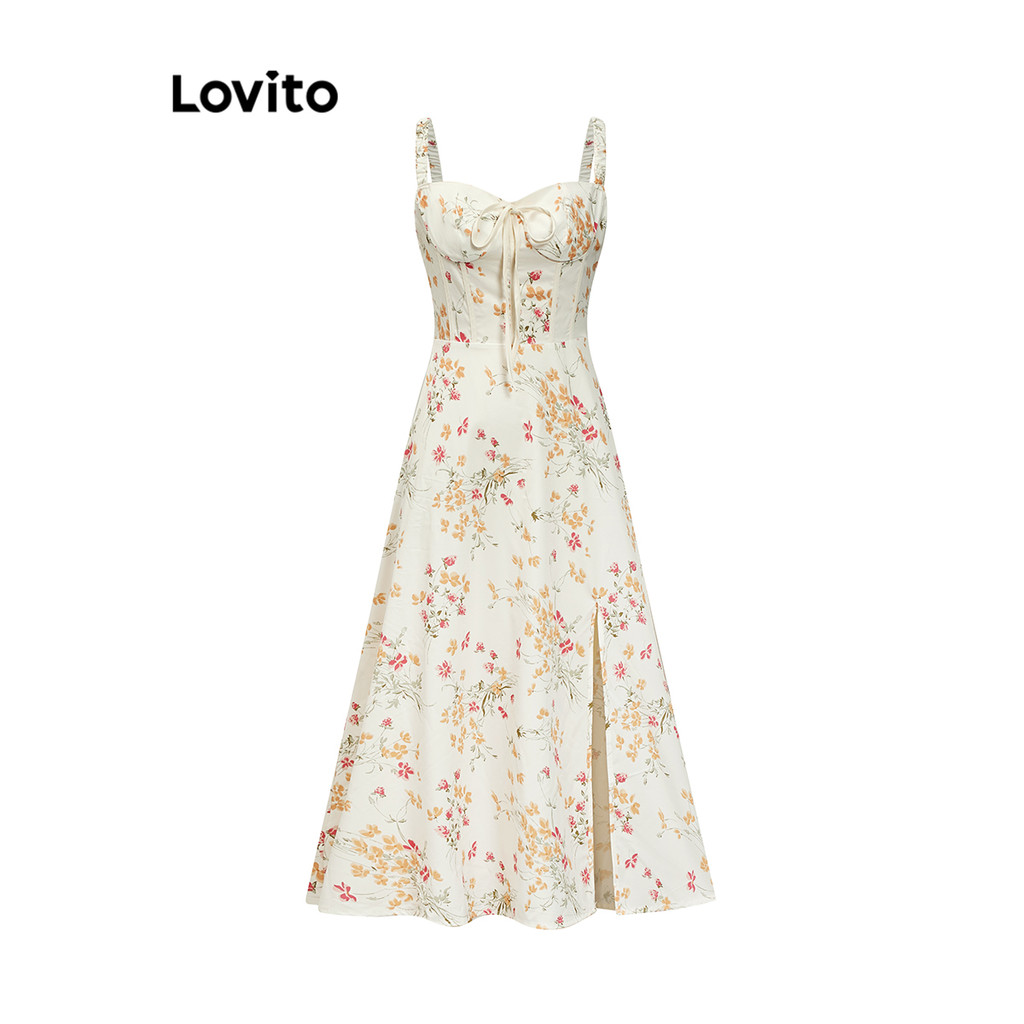 Lovito Vestido Elegante Ditsy Floral Estrutura Linha Lace Up Vestido Dividido Para Mulheres L87ED006 (Multicolorido)