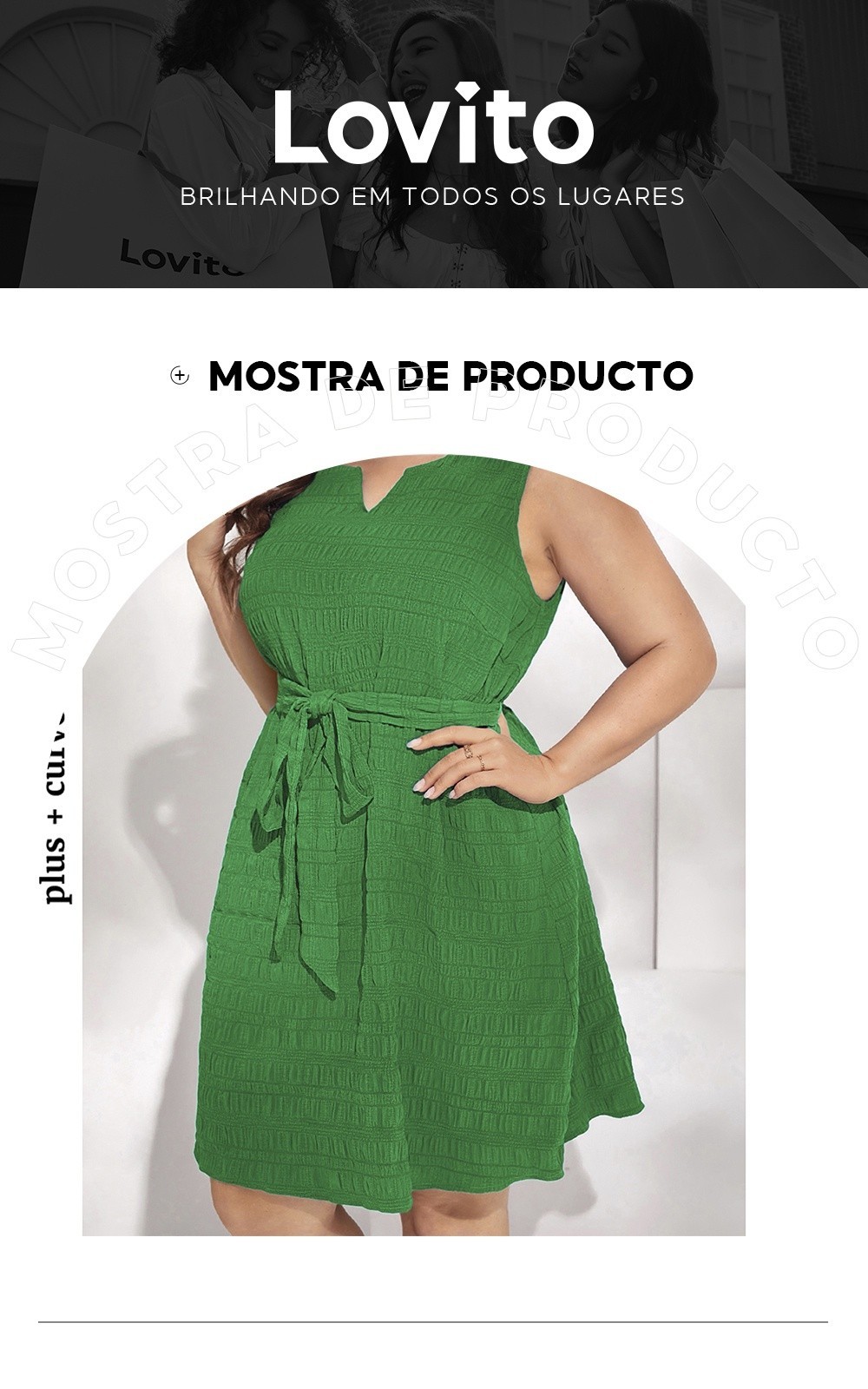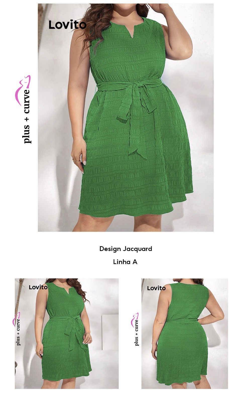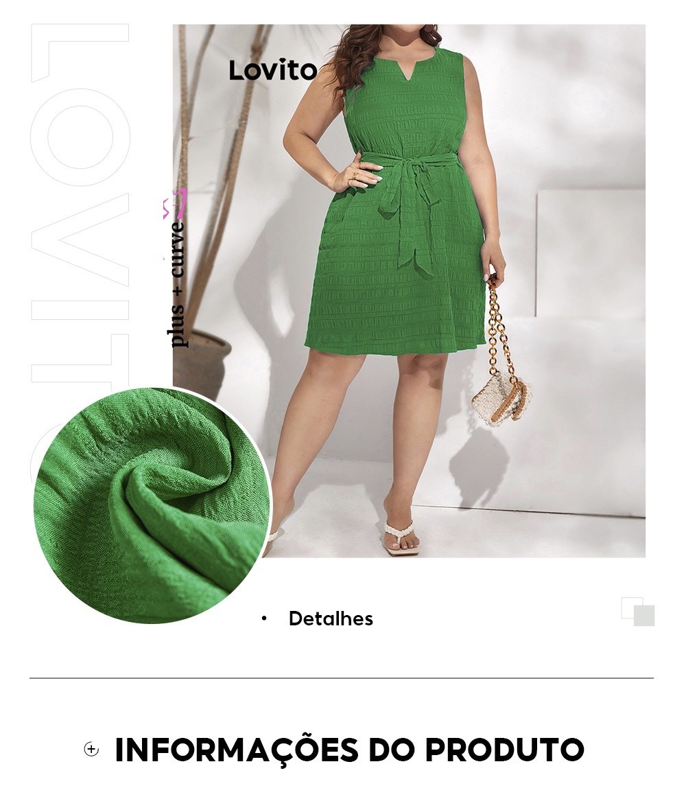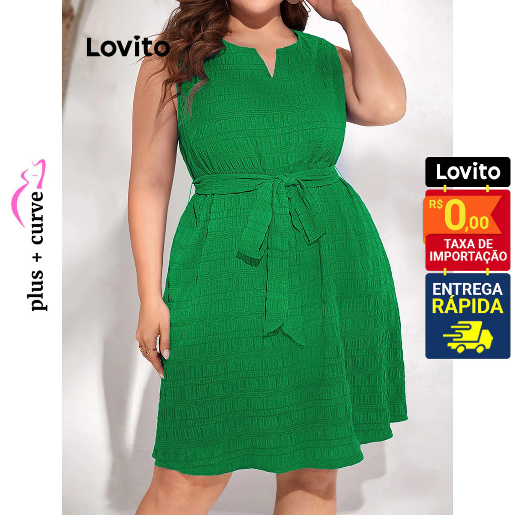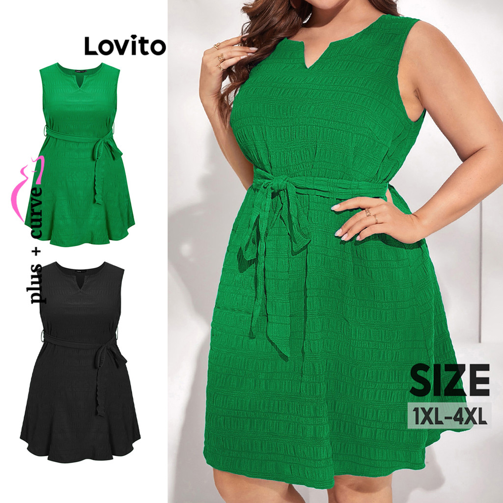 Lovito Vestido Feminino Com Amarração Na Cintura Plus Size LBE05147