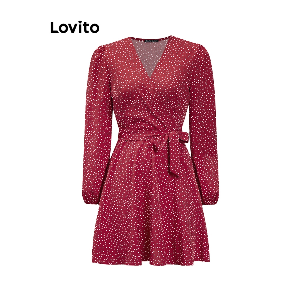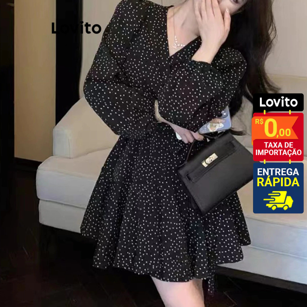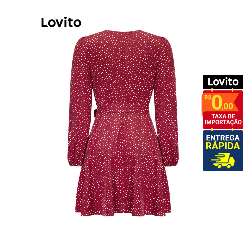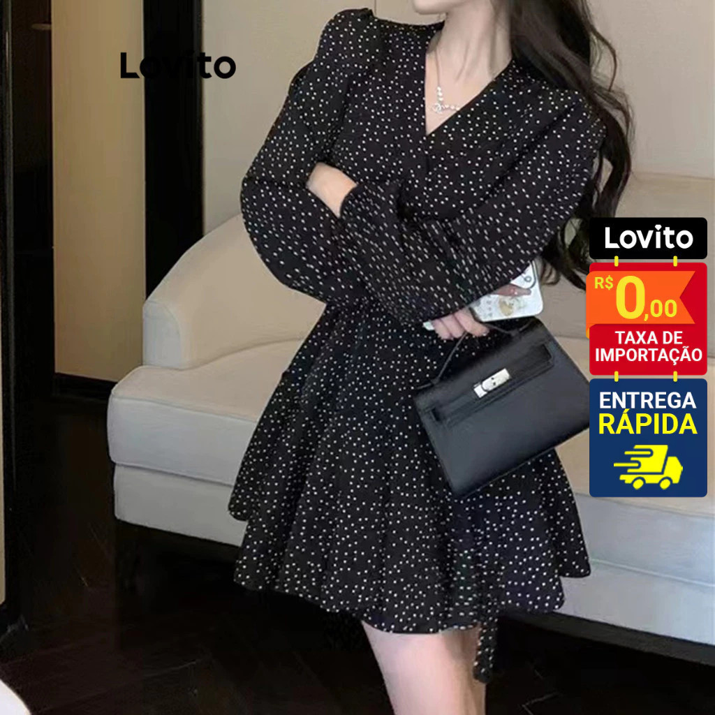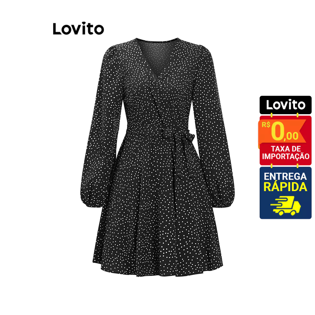 Lovito Vestido Feminino Curto Manga Longa Estampado LNE27238