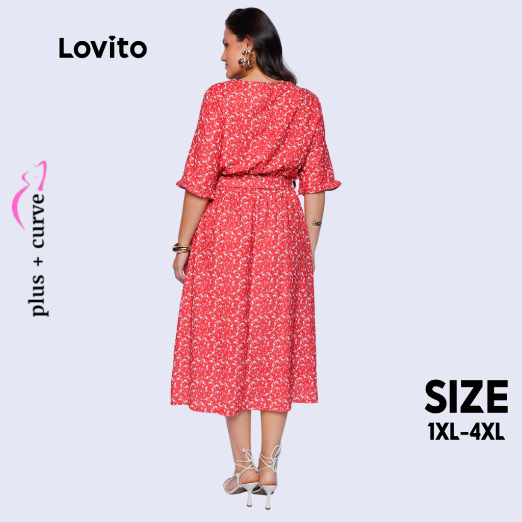 Lovito Vestido Plus Size Moda Modesta Midi Manga Bufante Com Amarração Feminino LB273BRL302