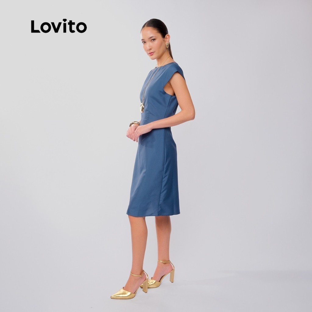 Lovito Vestido Sem Mangas Escritorio Elegante Feminino Liso em A LB906BRL936