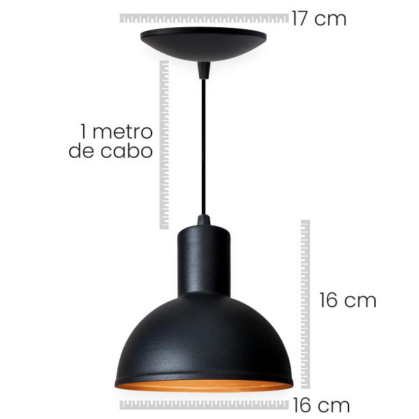 A luminária pendente Joana , com um design contemporâneo, possui 16 cm de diâmetro por 16 cm de altura. Com um material resistente ao tempo, normalmente utilizada para dar toque de elegância aos ambientes internos, é compatível com lâmpadas comuns ou LED, as quais não acompanham o produto.