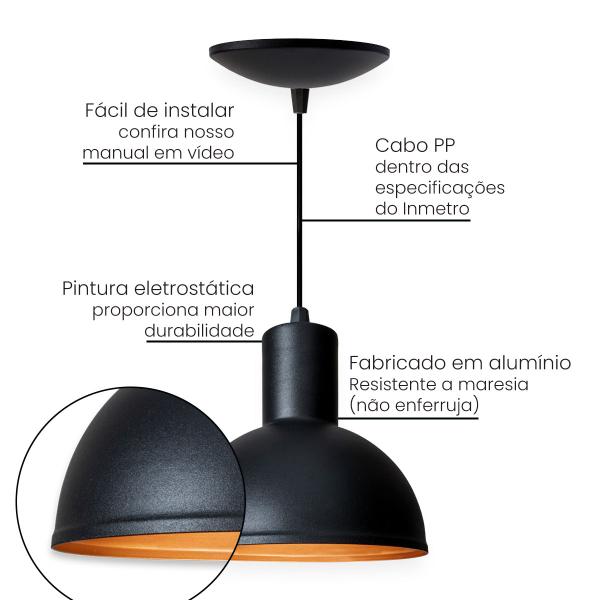 Nossas luminárias pendentes possuem pintura eletrostática o que proporciona melhor acabamento e durabilidade.