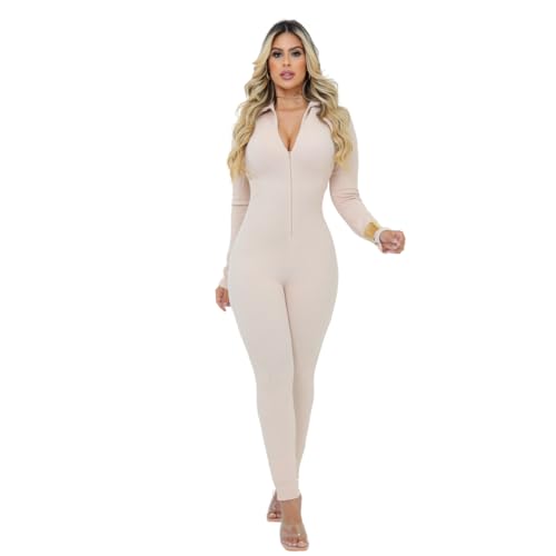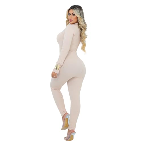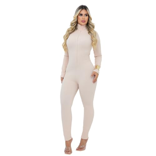 Macacão feminino longo gola alta com zíper canelado premium macacão Virgínia luxo