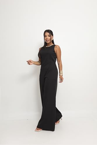 Macacão Longo Alfaiataria Com Zíper E Botão Social Pantalona (Preto, M)
