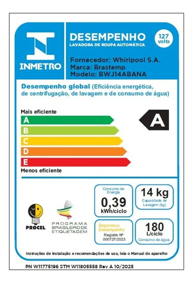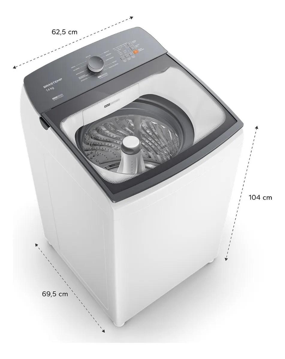 Com dimensões de 104 cm de altura, 62,5 cm de largura e 69,5 cm de profundidade, a BWJ14AB se adapta facilmente a diferentes espaços. Seu peso de 3 kg e a alimentação por corrente doméstica facilitam a instalação em qualquer ambiente. A eficiência energética classificada como A assegura que você estará contribuindo para a preservação do meio ambiente enquanto cuida das suas roupas.