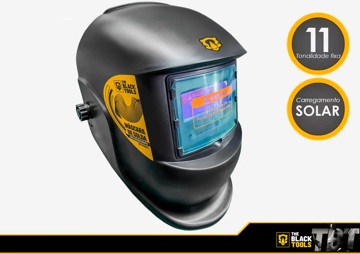 Leve, com design equilibrado, A máscara de solda The Black Tools, protege o usuário de partículas volantes frontais, radiação ultravioleta, infravermelho e luminosidade intensa.