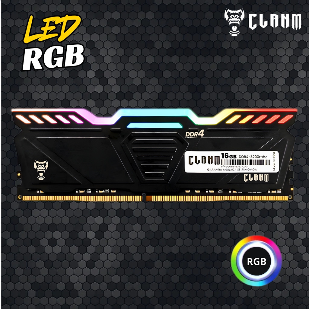 Memória RAM Gamer DDR4 Clanm 16GB 3200MHz RGB – Desempenho e Estilo para Desktop